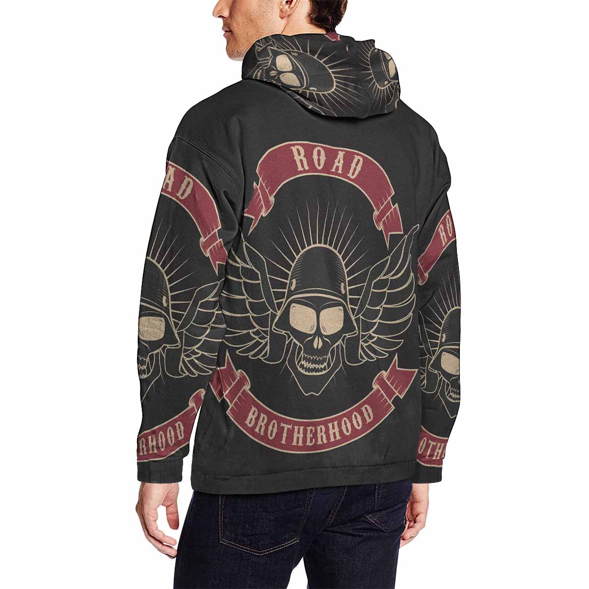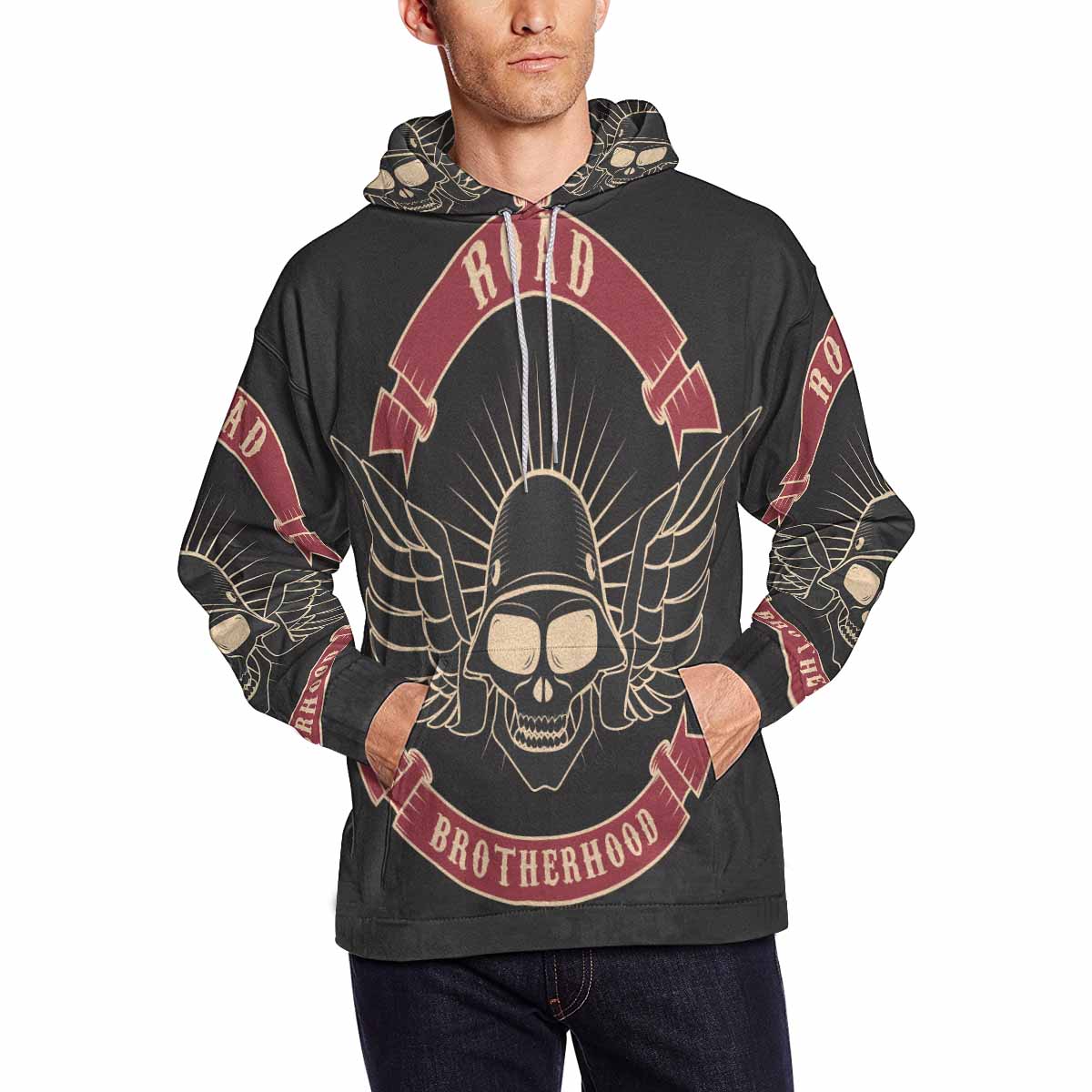 - Dye-sublimation printing, Personalized all-over print hoodie for men.
