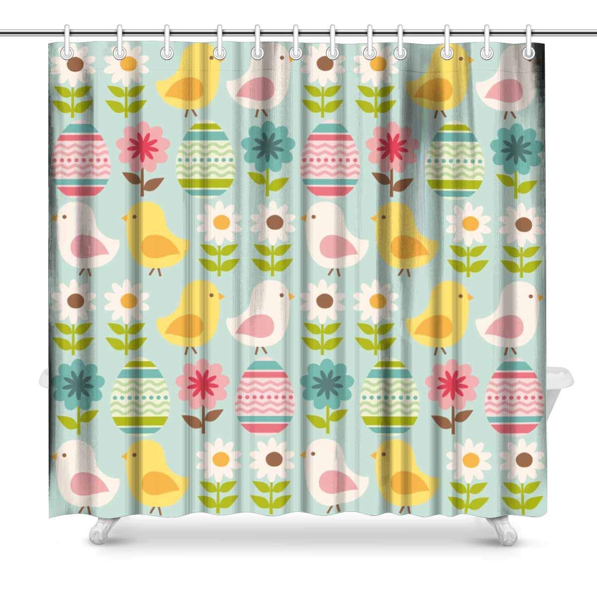 Easter Chicks and Eggs Polyester Fabric Bathroom Shower Curtain