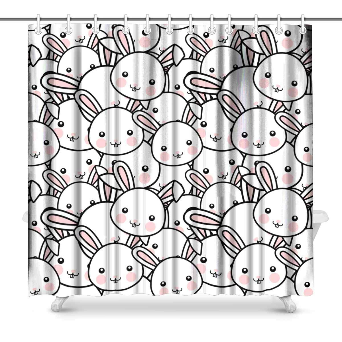 Easter Rabbit Cartoon Face Art Bathroom Decor Shower Curtain with Hooks