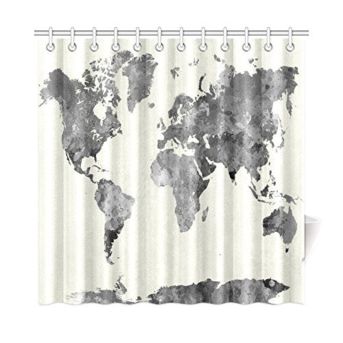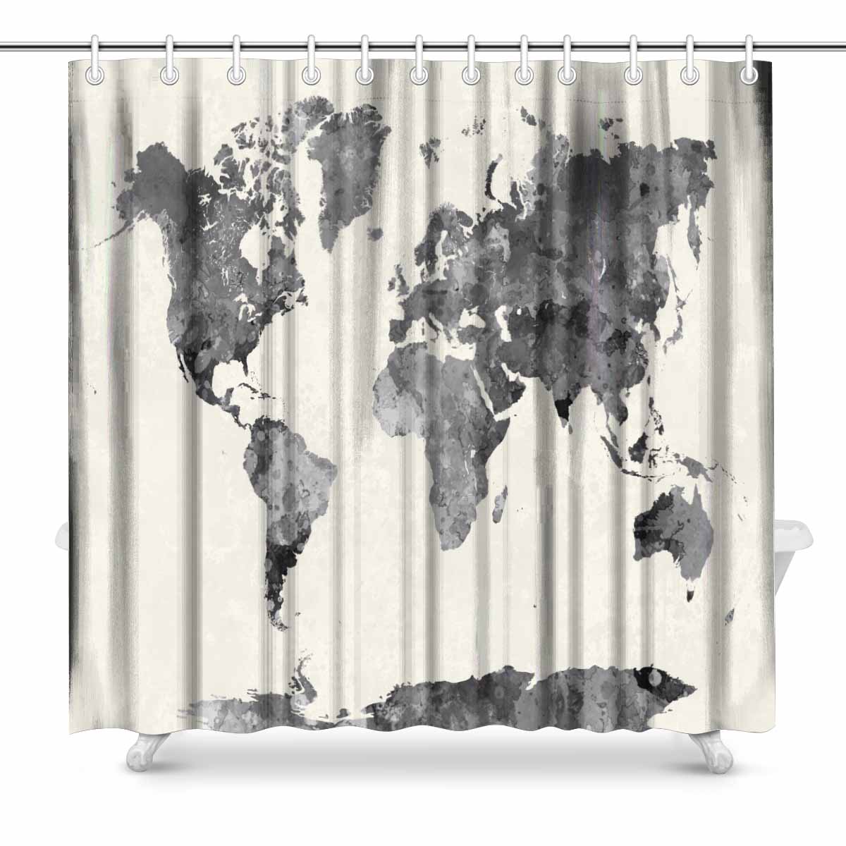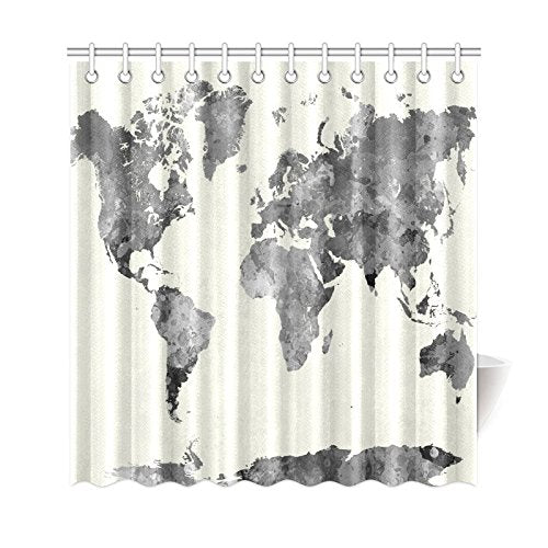 Grey Globe Art Home Bath Decor, World Map Polyester Fabric Shower Curtain Bathroom Sets