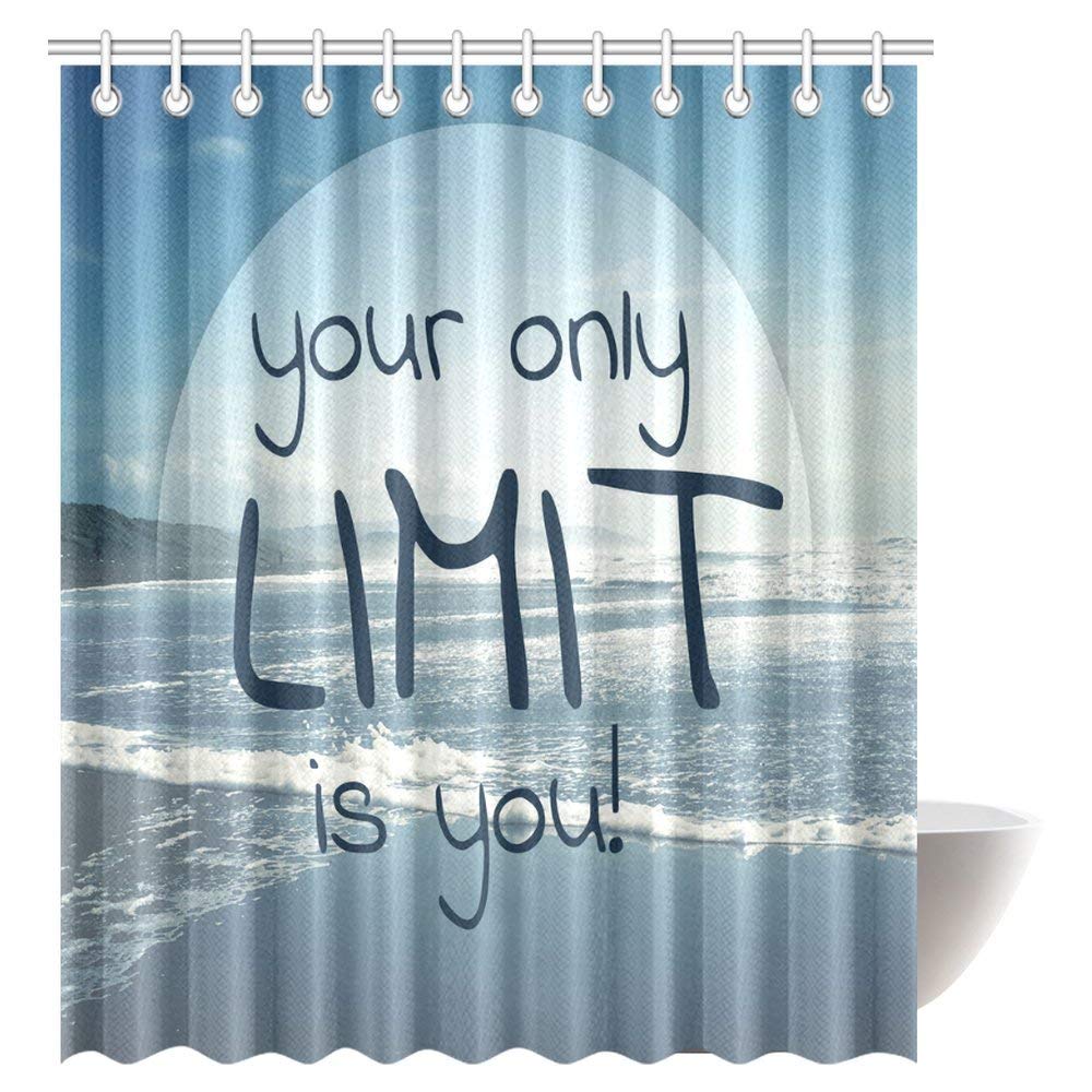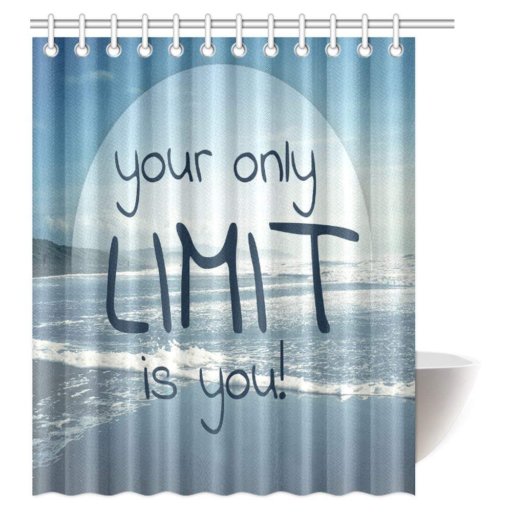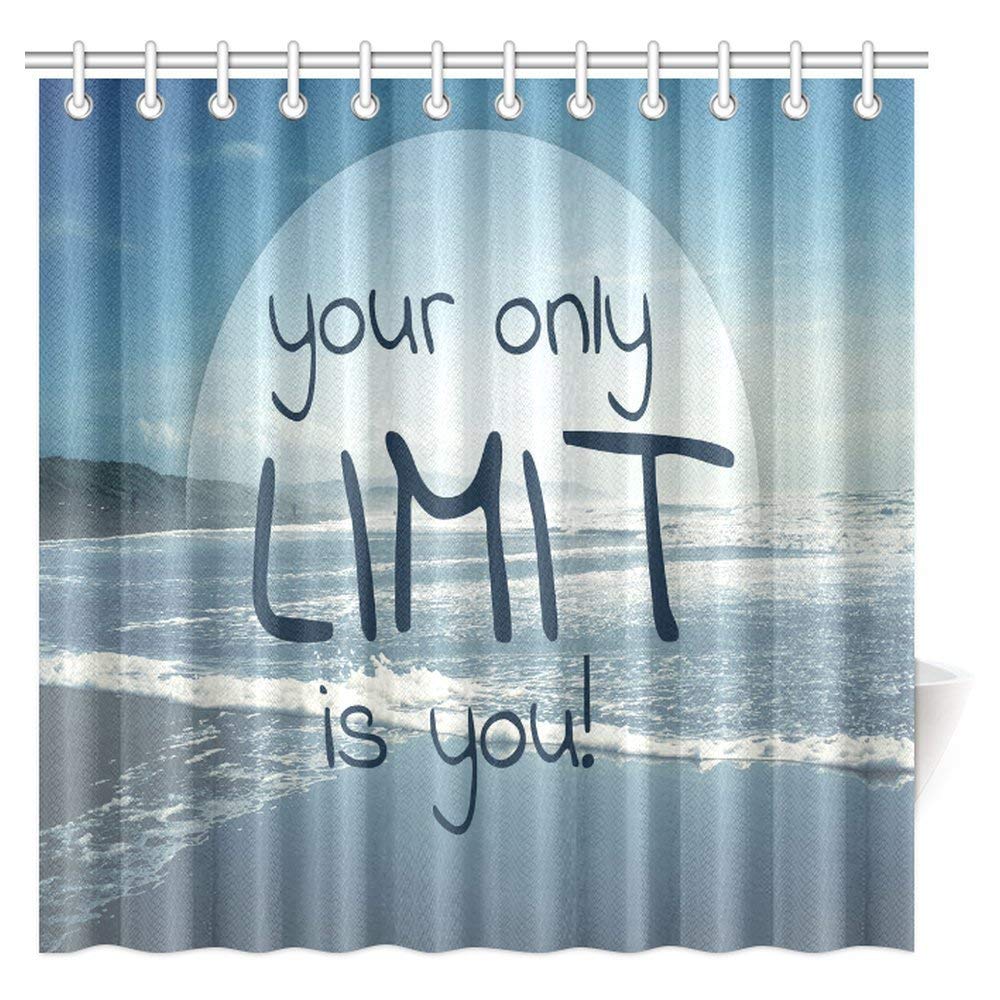 Motivational Quote Ocean Decor Shower Curtain, Your Only Limit is You Polyester Fabric Bathroom Shower Curtain