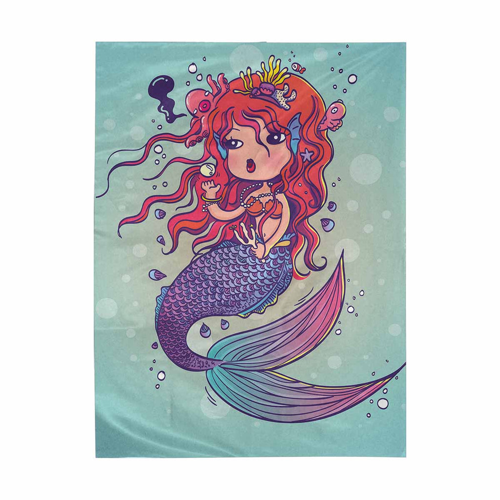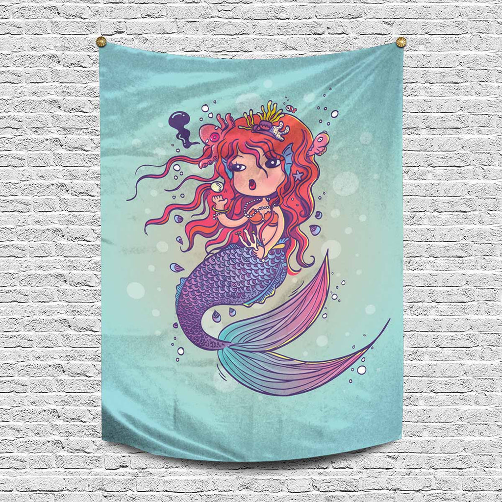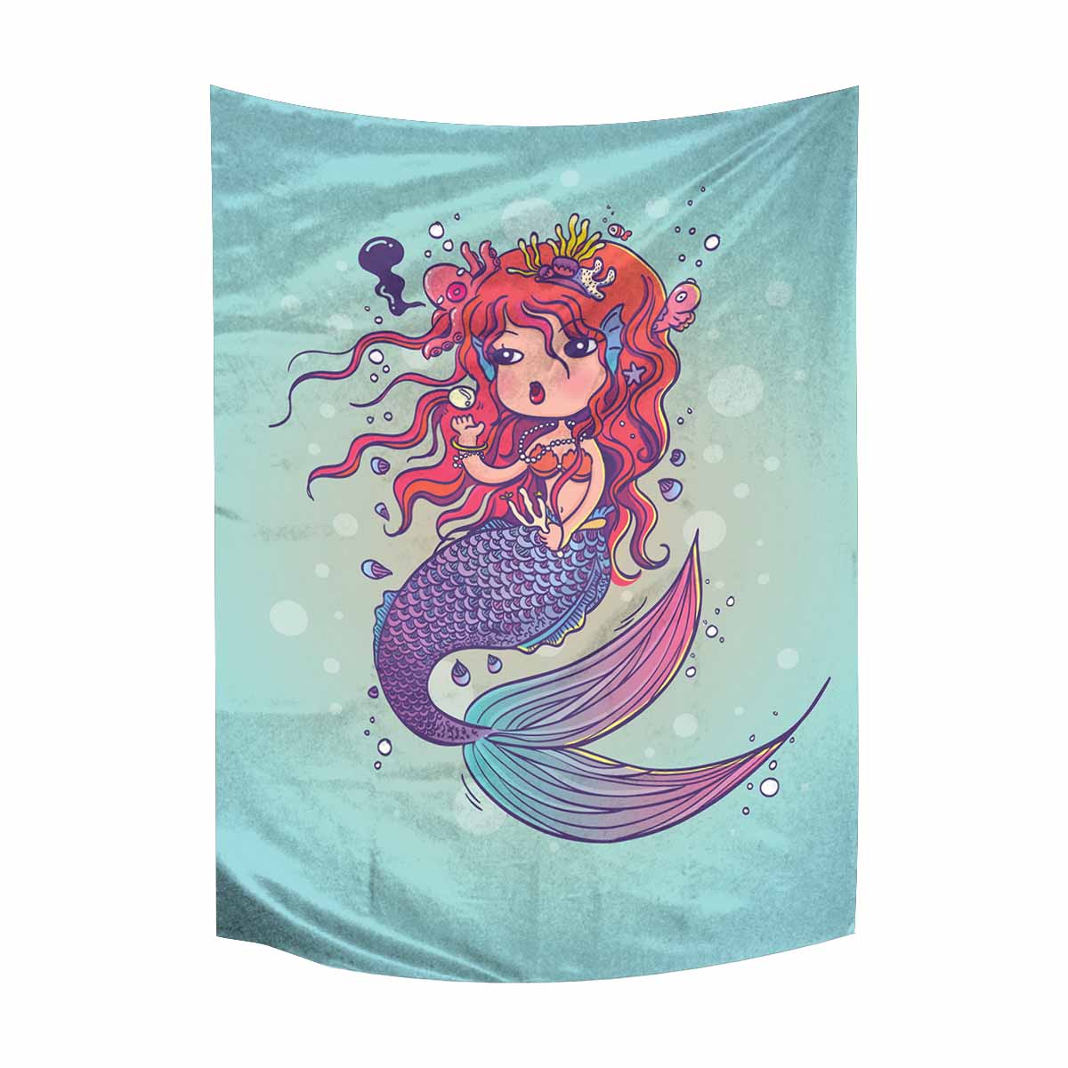 Nature Landscape themed Wall Tapestries printed Doodle Mermaid Under the Sea Cartoon Character