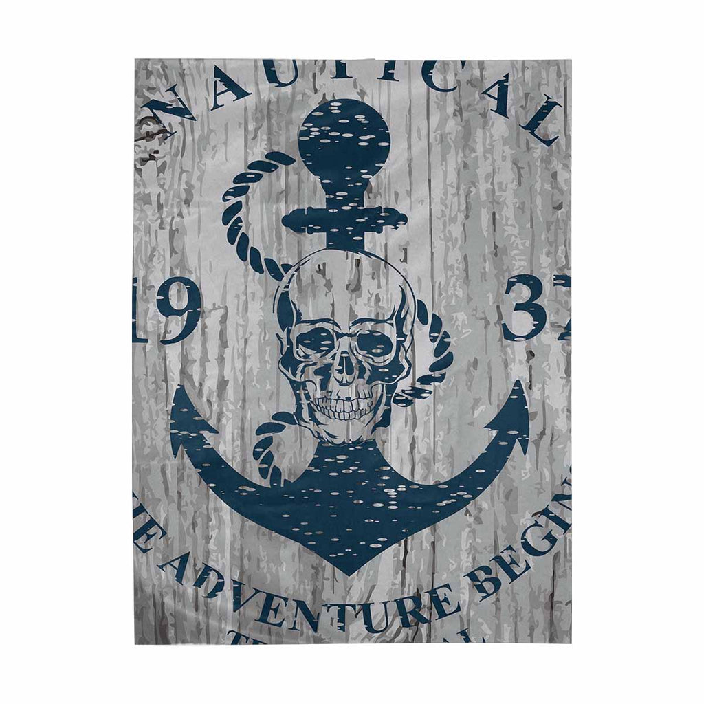 Nature Landscape themed Wall Tapestries printed Nautical skull marine badge on wood backgroud