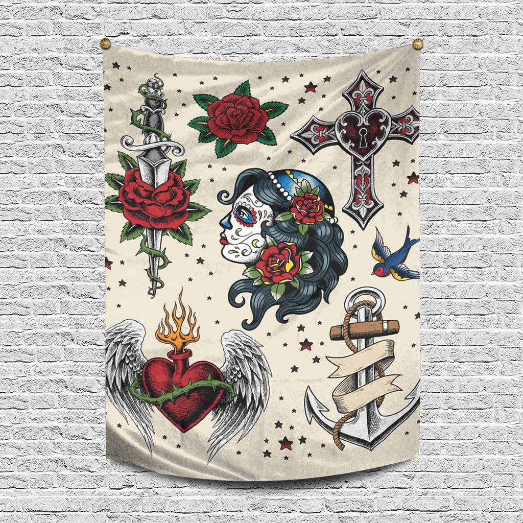 Nature Landscape themed Wall Tapestries printed Tattoo Flash Illustration