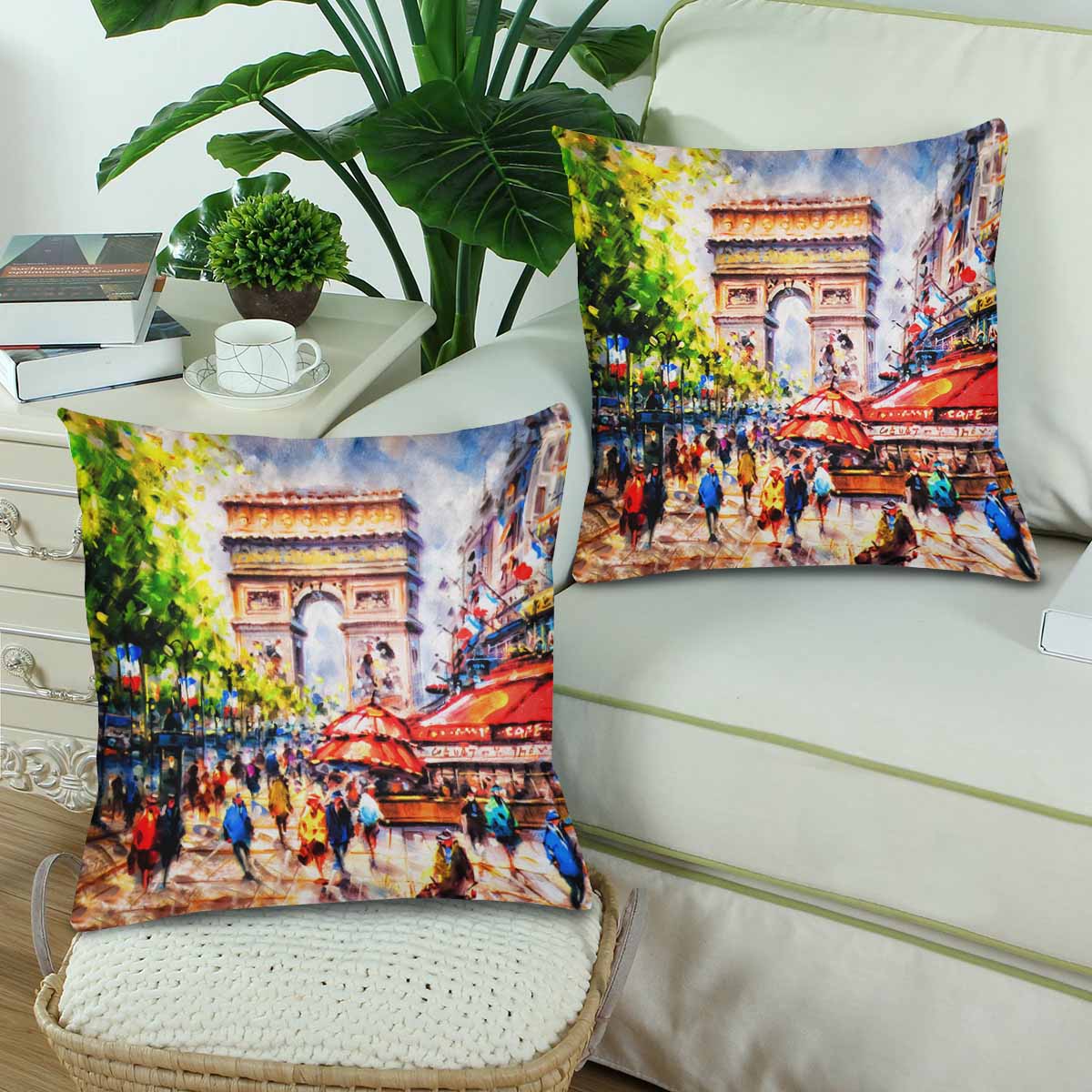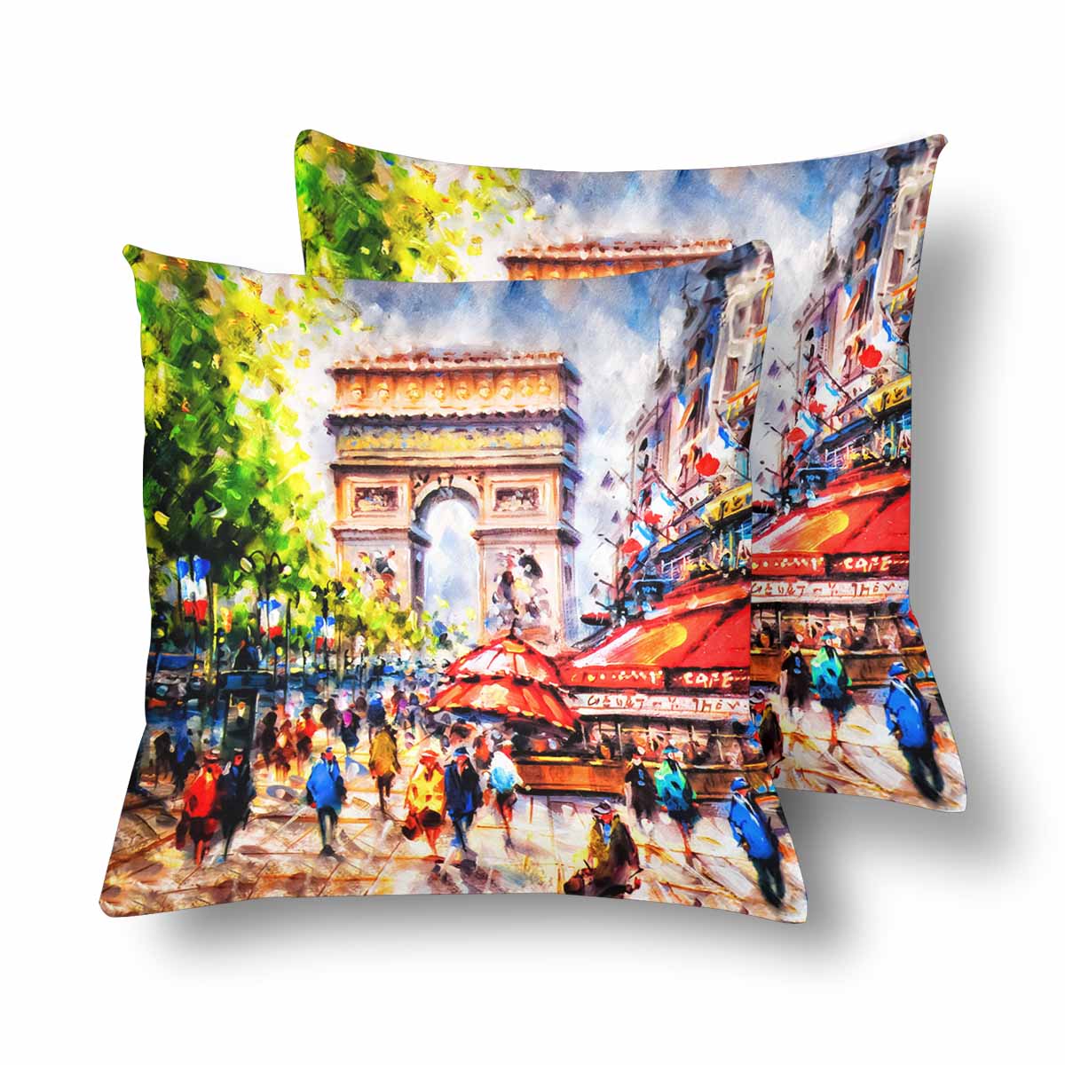 Arts themed Pillow Cases printed with Colorful painting of Arc D Triomphe in Paris