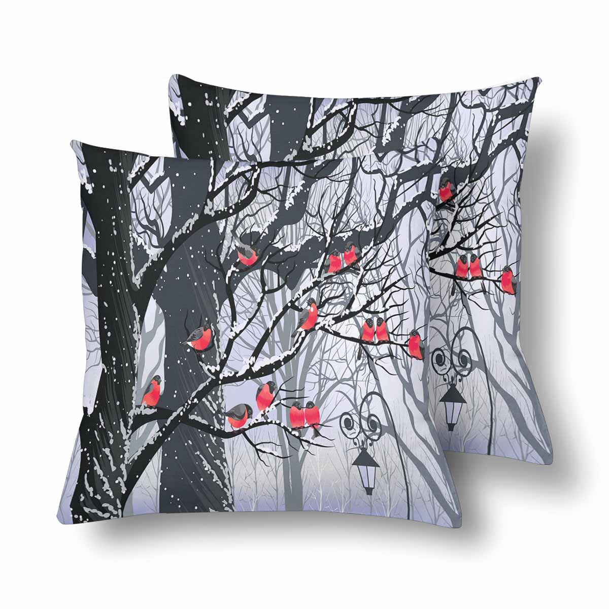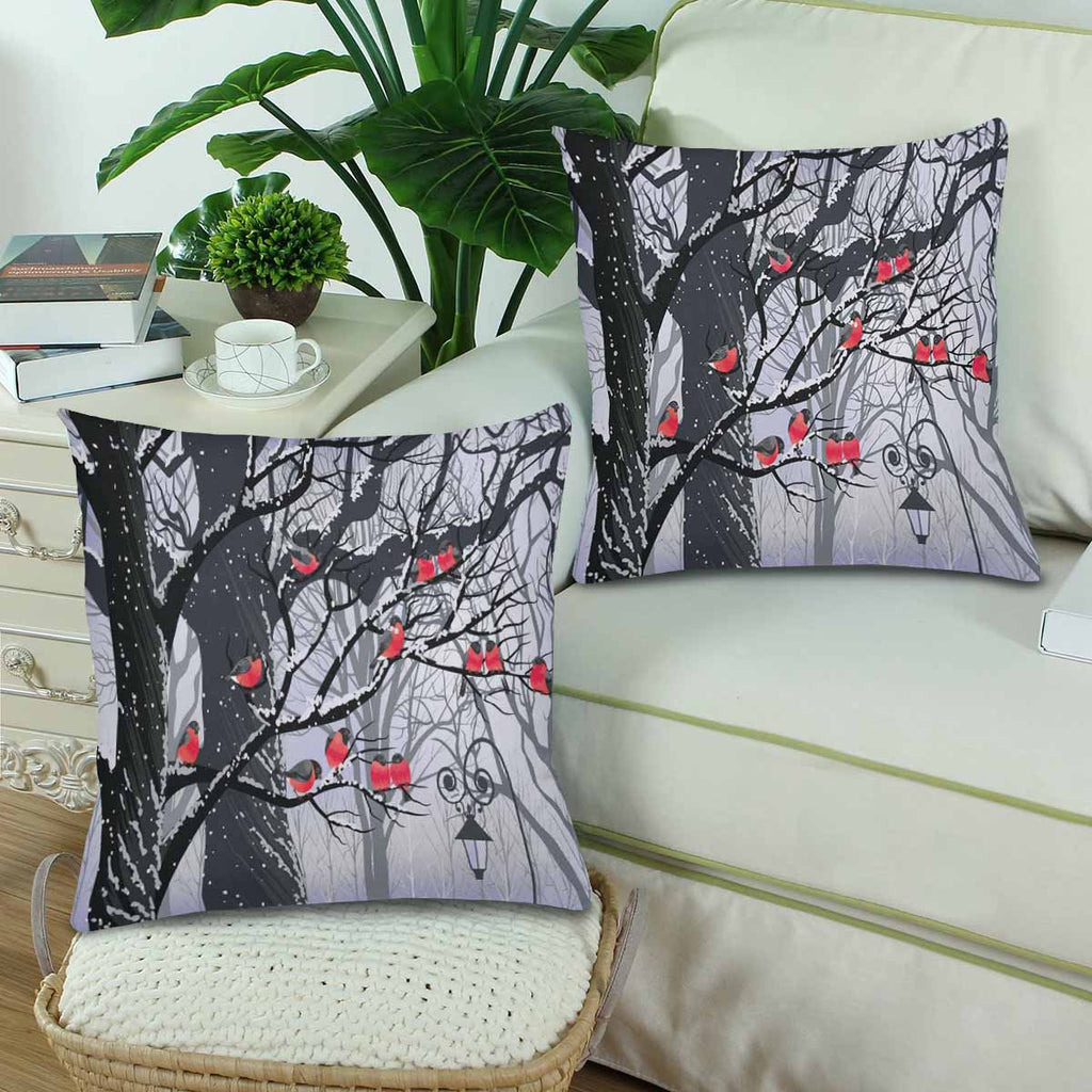 Tree and Mountains themed Pillow Case printed with Bullfinches on trees