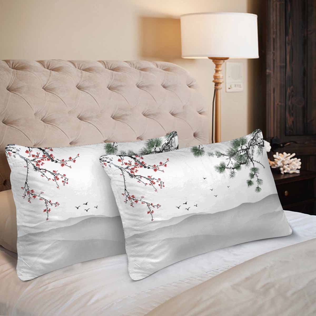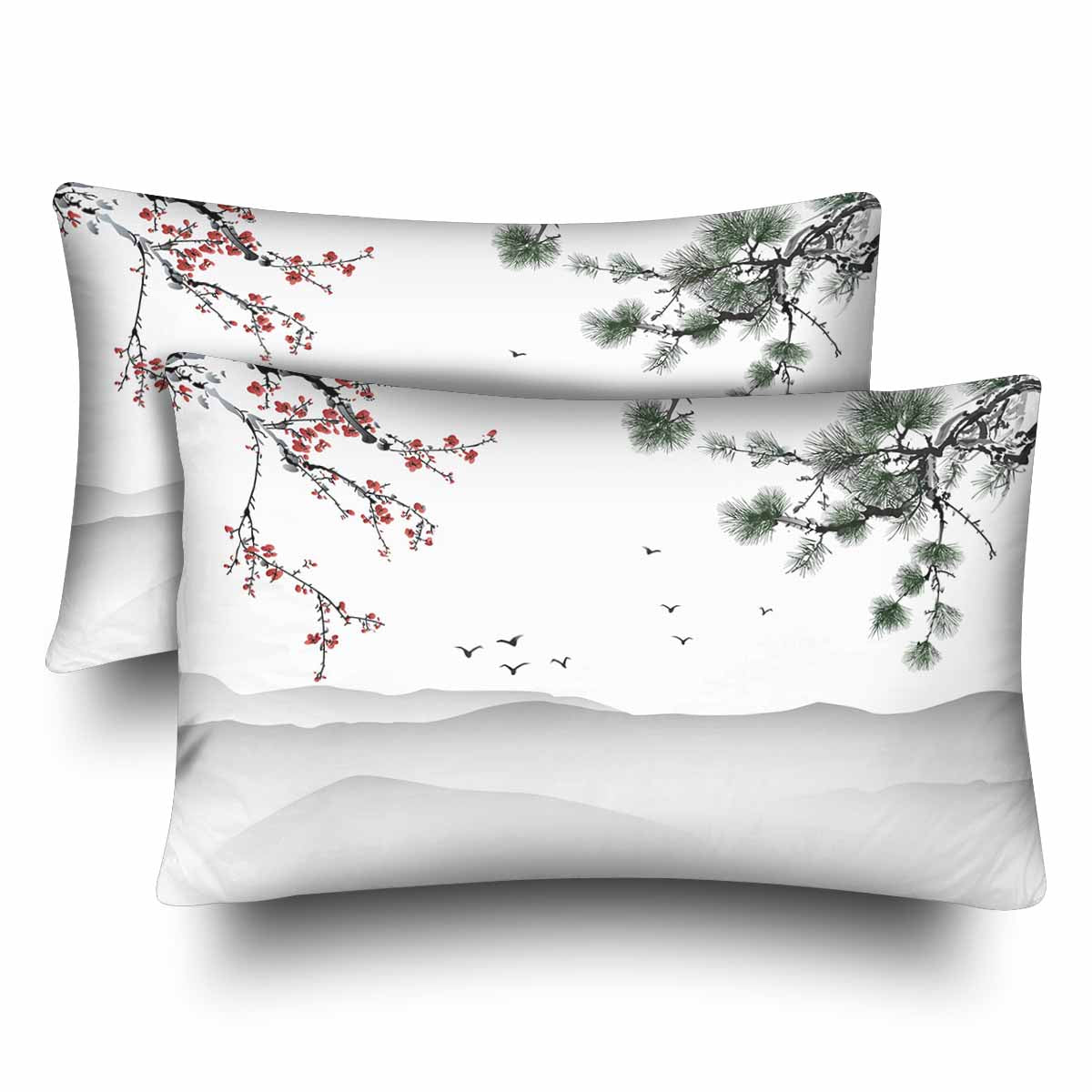 Tree and Mountains themed Rectangle Pillow Cases printed Chinese painting plum blossom and pine tree