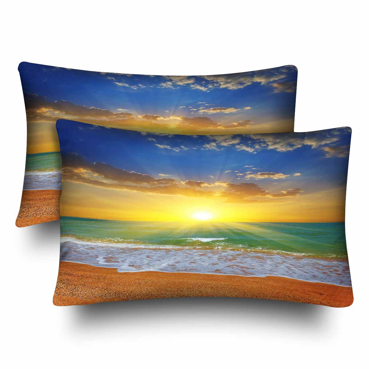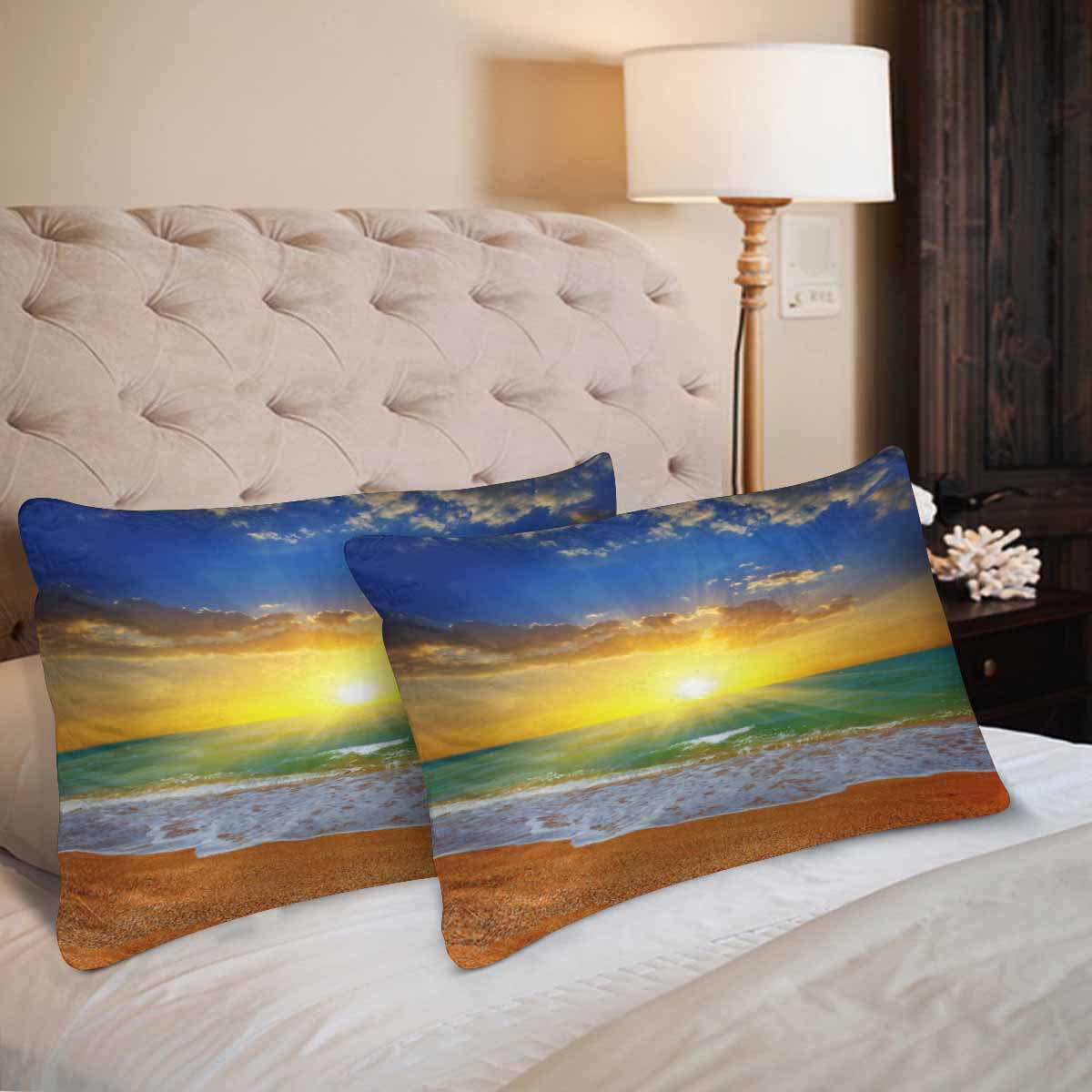 Tropical themed Rectangle Pillow Cases printed Beautiful evening sea beach scene