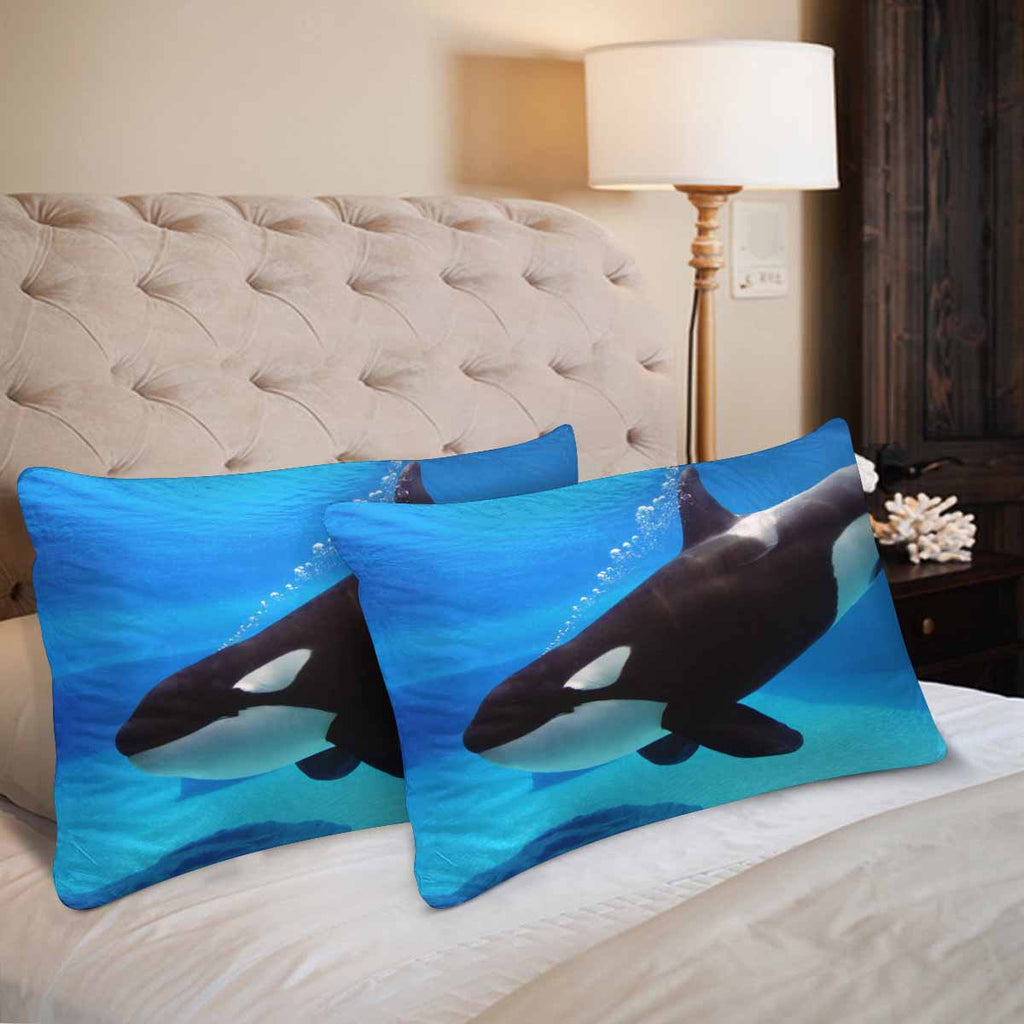 Tropical themed Rectangle Pillow Cases printed orca playing in the pool