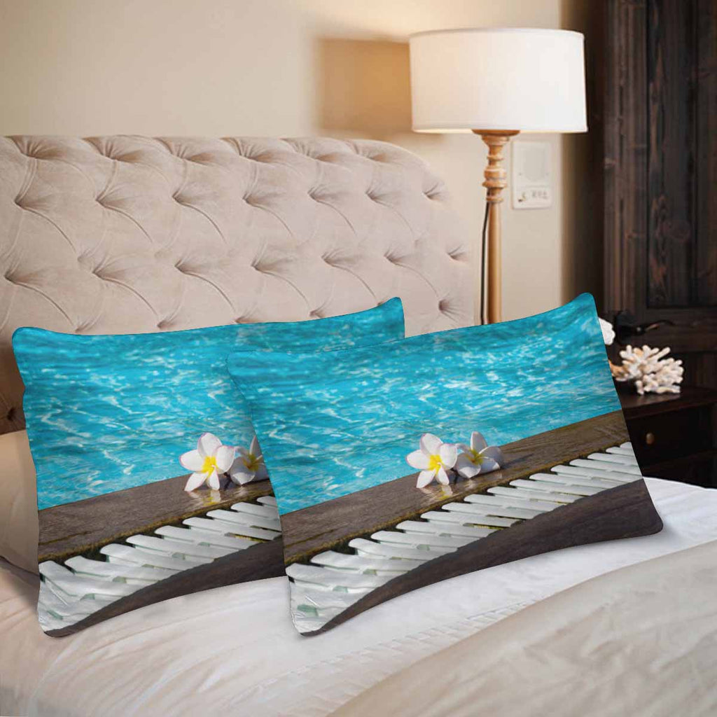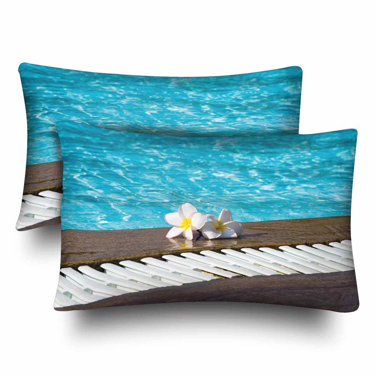 Tropical themed Rectangle Pillow Cases printed Tropical flower Plumeria on swimming pool