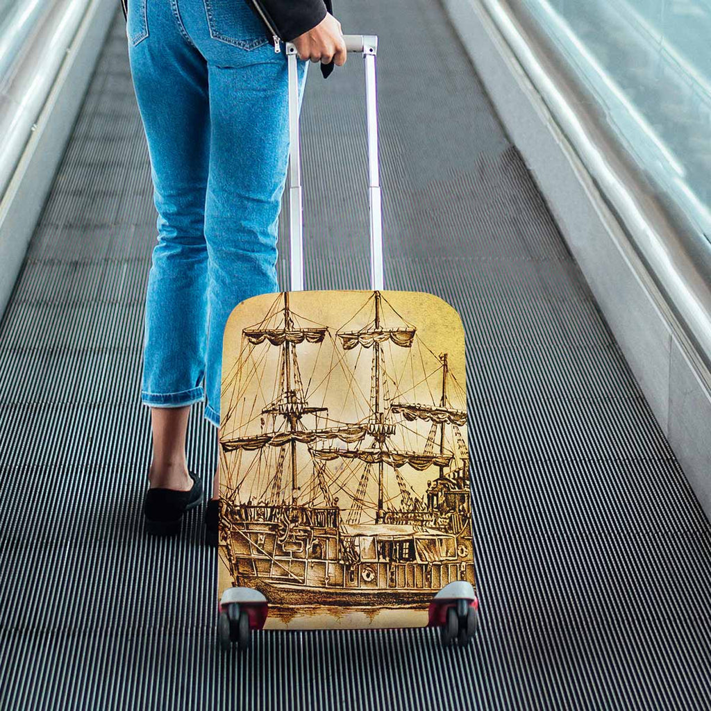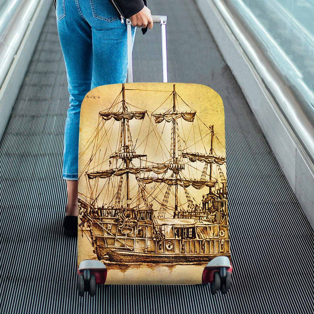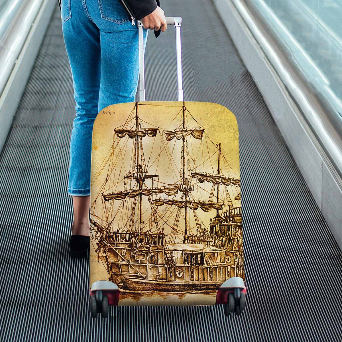 Retro themed Cover for Luggage suitcase printed Antique boat sea motive