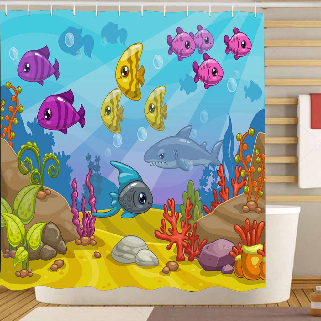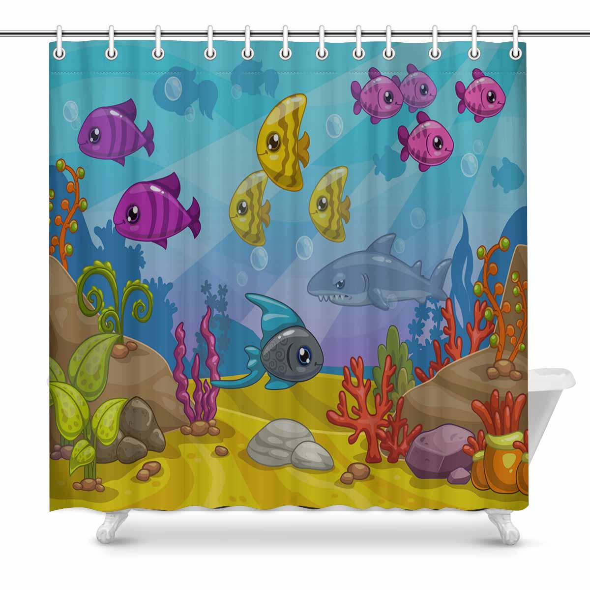 Seaworld themed print on shower curtains for bathroom, create a brilliant atmosphere in your bathroom, include a selection of different stylish and custom-made designs for your bath decoration.