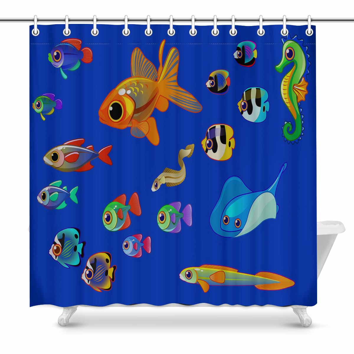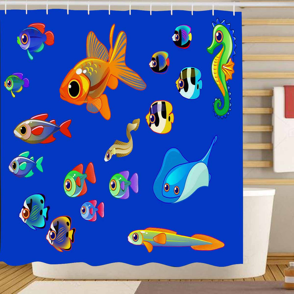 Seaworld Shower Curtains print themed with cartoon fish
