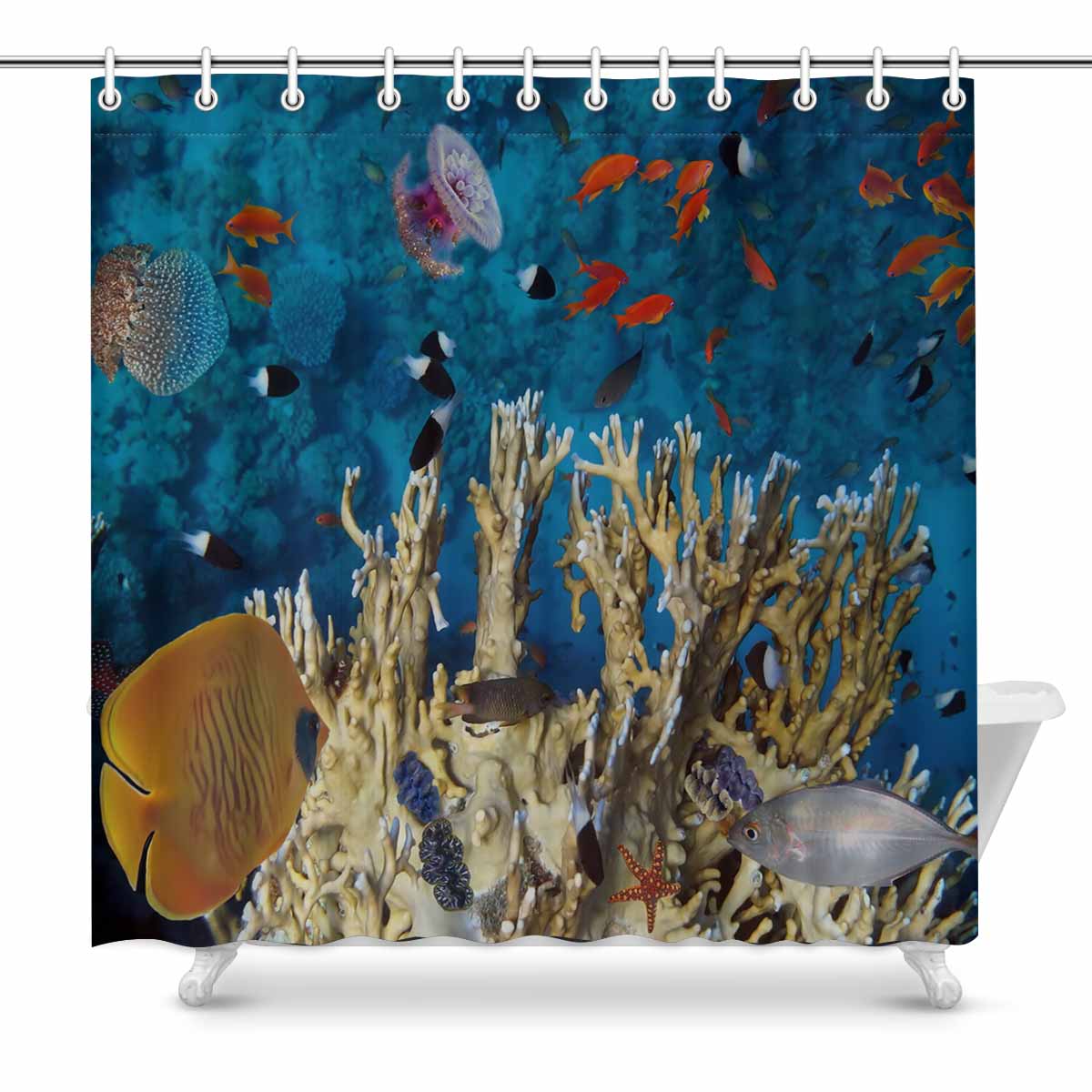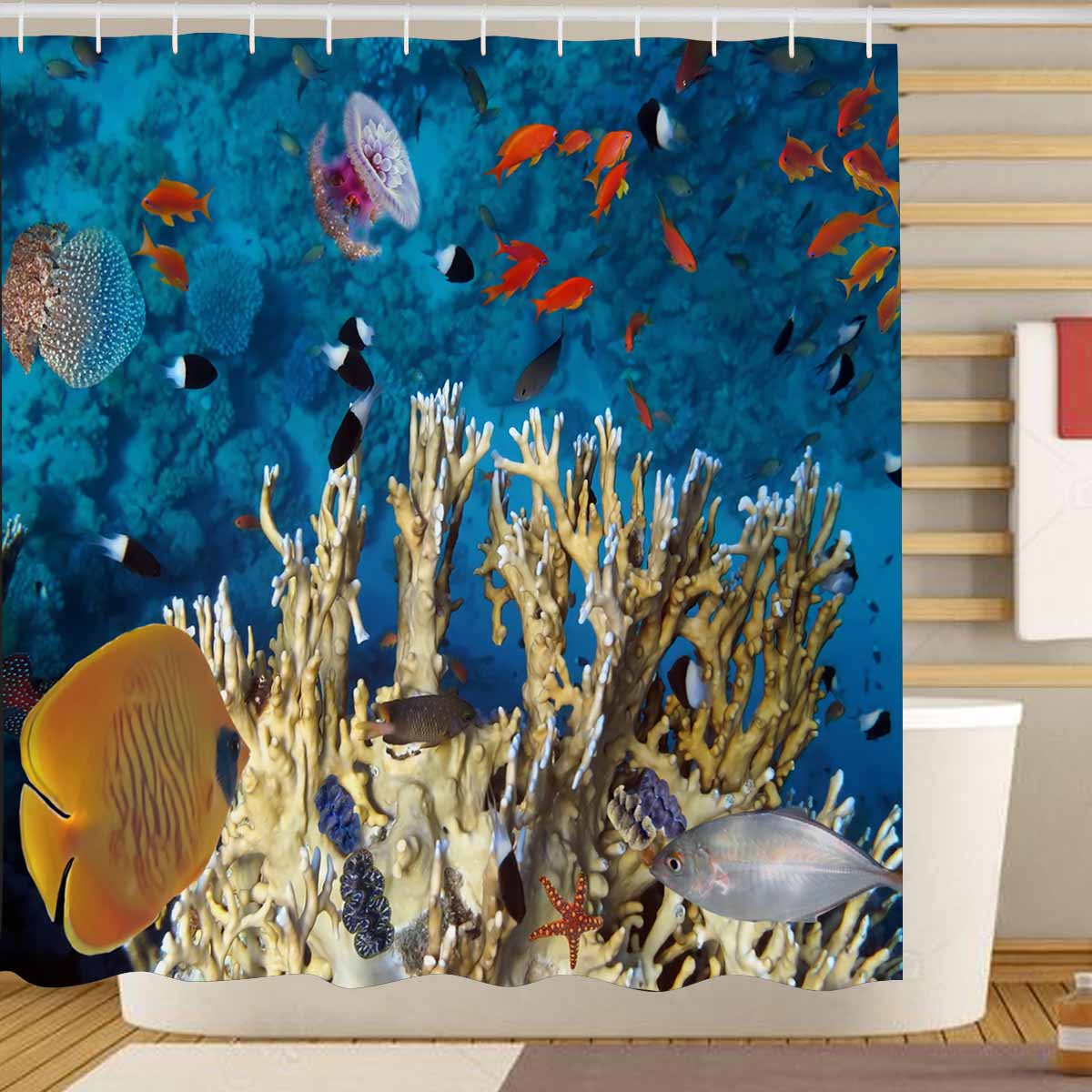 Seaworld Shower Curtains print themed with coral fishes