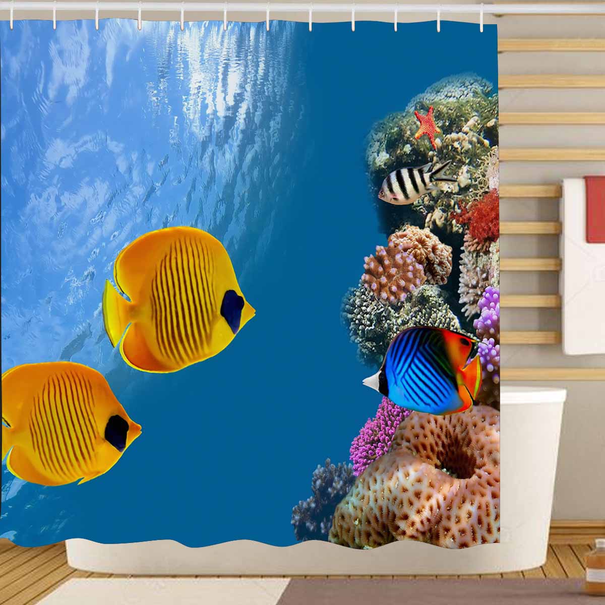 Seaworld themed print on shower curtains for bathroom, create a brilliant atmosphere in your bathroom, include a selection of different stylish and custom-made designs for your bath decoration.