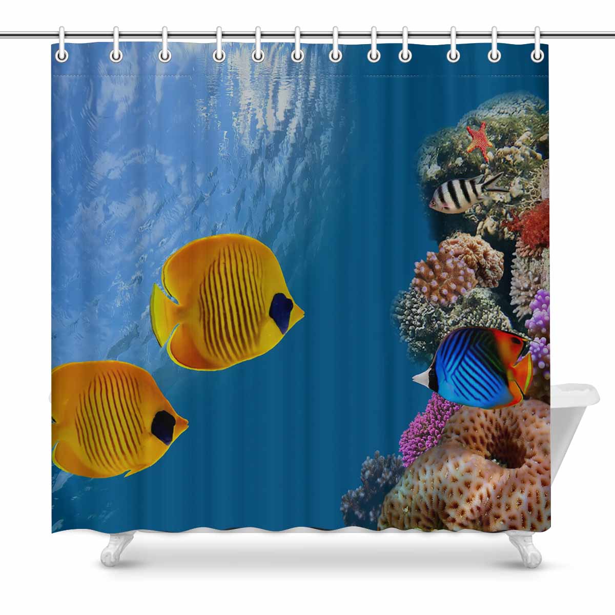 Seaworld Shower Curtains print themed with Masked butterfly fish