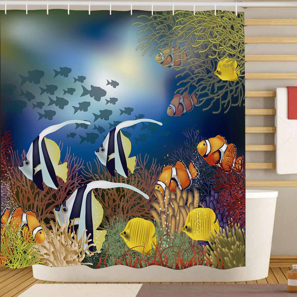 Seaworld Shower Curtains print themed with tropical fish