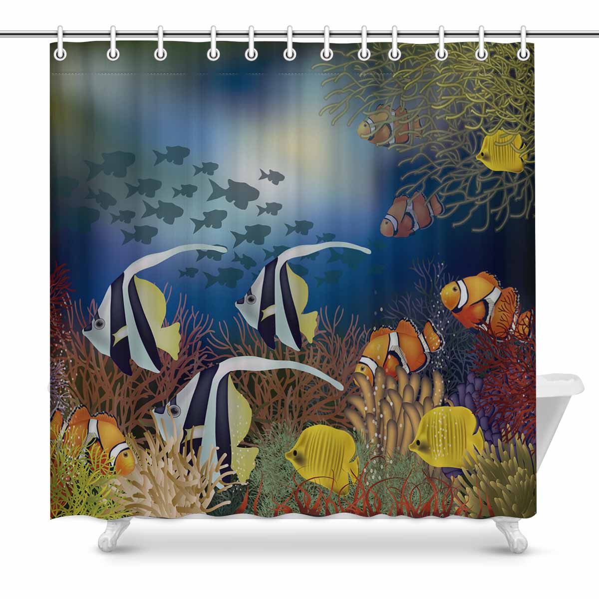 Seaworld themed print on shower curtains for bathroom, create a brilliant atmosphere in your bathroom, include a selection of different stylish and custom-made designs for your bath decoration.