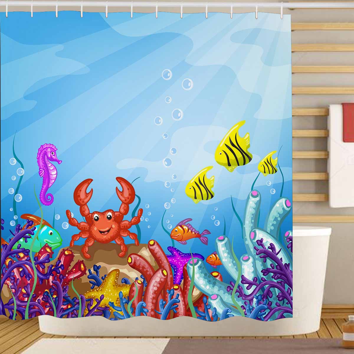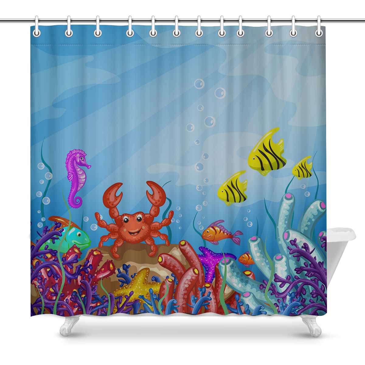 Seaworld themed print on shower curtains for bathroom, create a brilliant atmosphere in your bathroom, include a selection of different stylish and custom-made designs for your bath decoration.