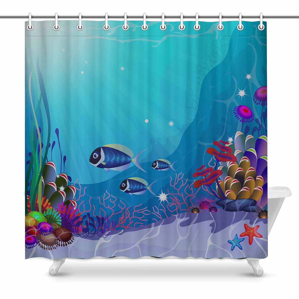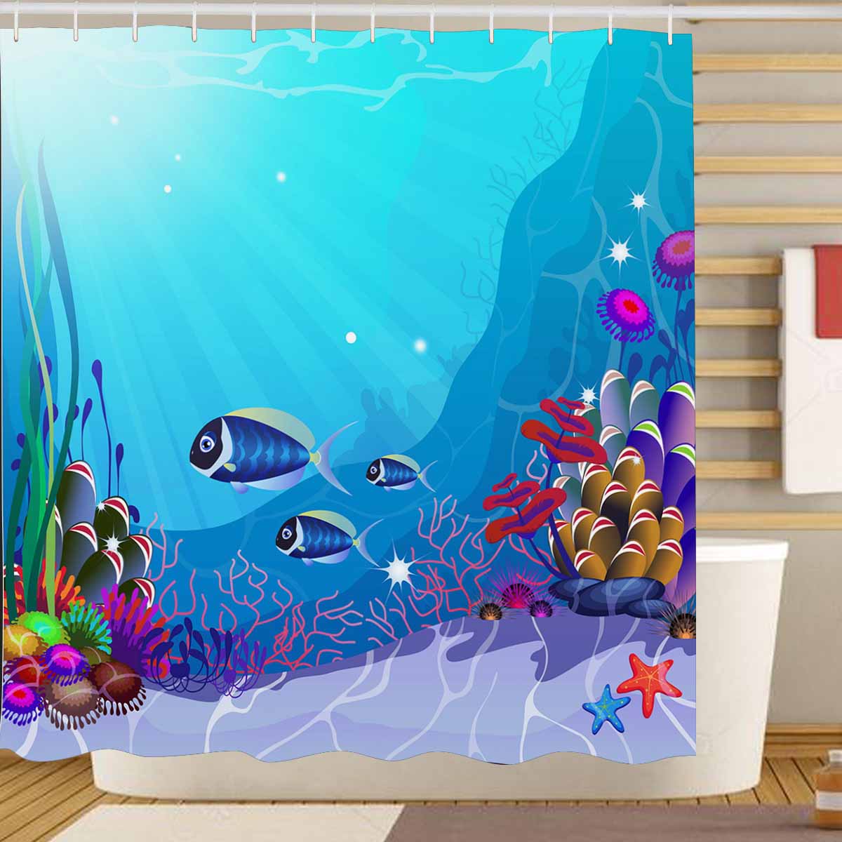 Seaworld themed print on shower curtains for bathroom, create a brilliant atmosphere in your bathroom, include a selection of different stylish and custom-made designs for your bath decoration.