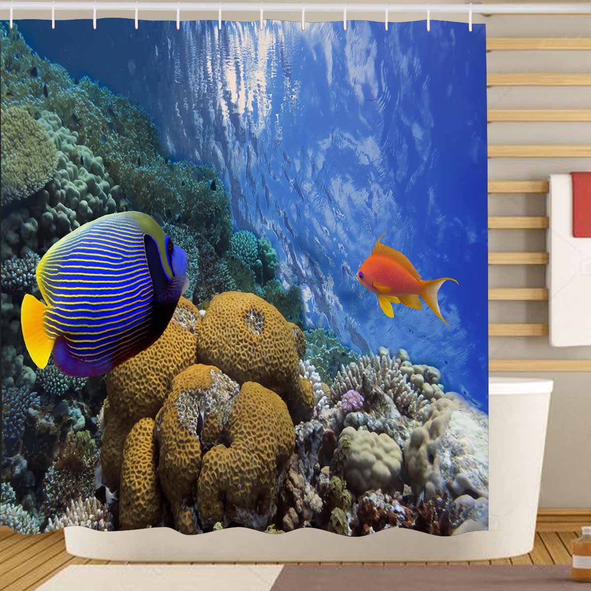 Seaworld themed print on shower curtains for bathroom, create a brilliant atmosphere in your bathroom, include a selection of different stylish and custom-made designs for your bath decoration.