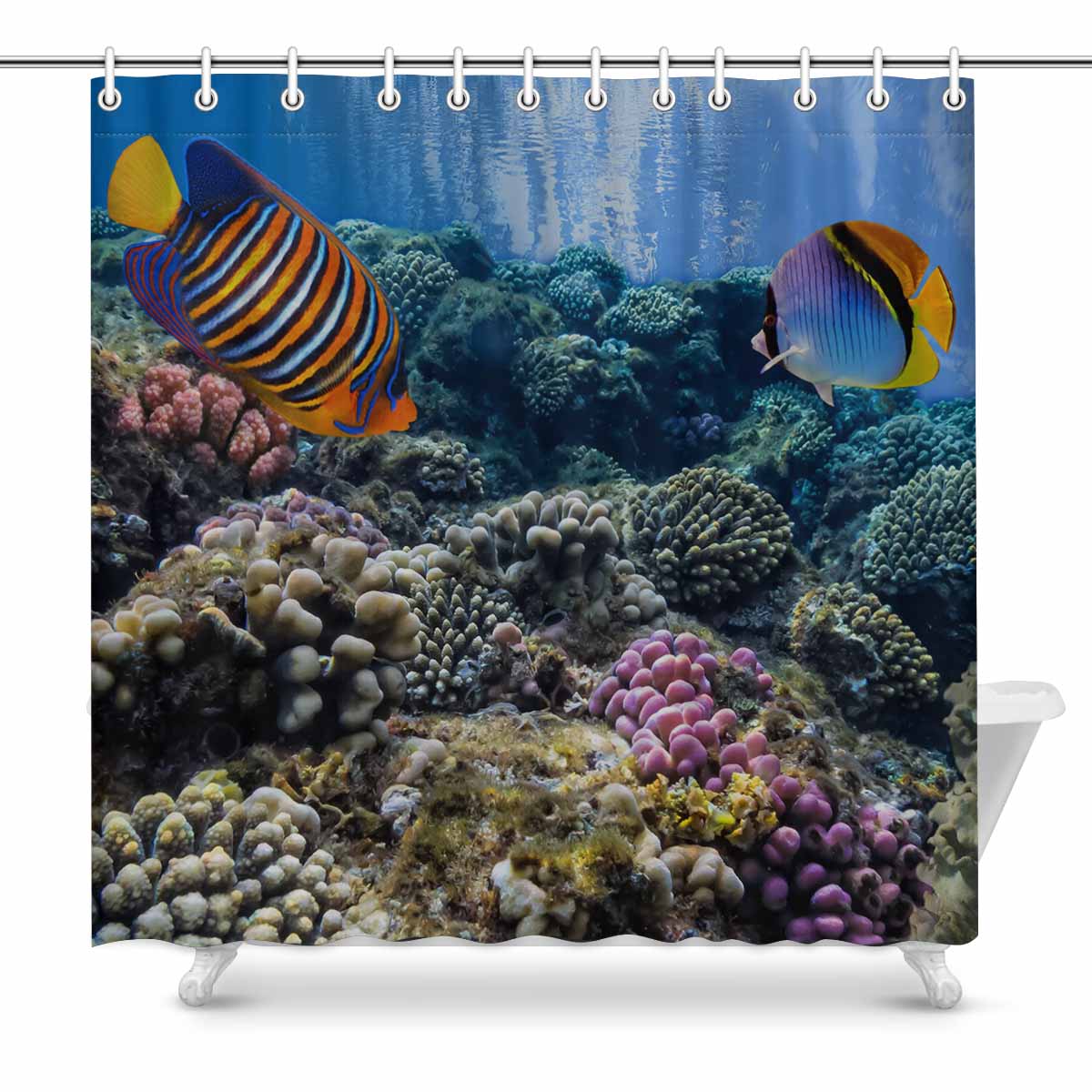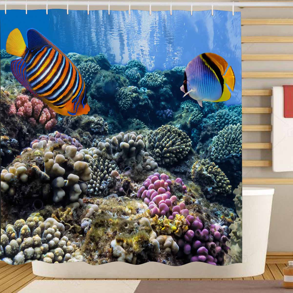 Seaworld themed print on shower curtains for bathroom, create a brilliant atmosphere in your bathroom, include a selection of different stylish and custom-made designs for your bath decoration.