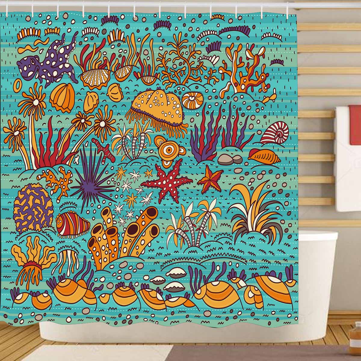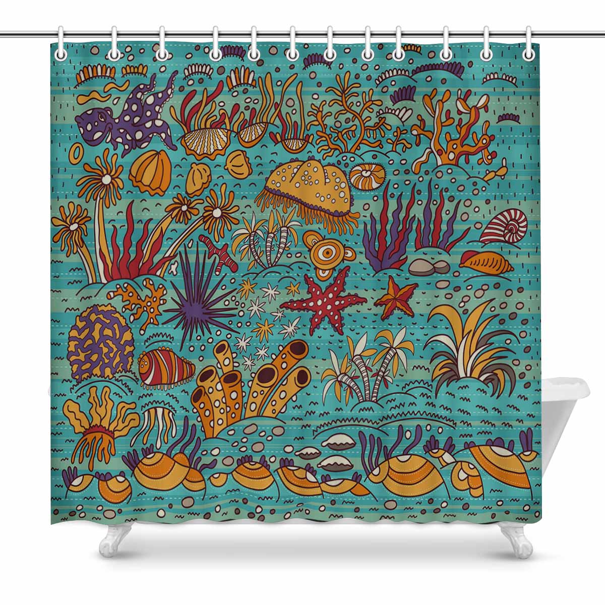 Seaworld themed print on shower curtains for bathroom, create a brilliant atmosphere in your bathroom, include a selection of different stylish and custom-made designs for your bath decoration.