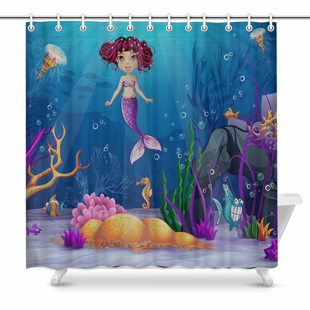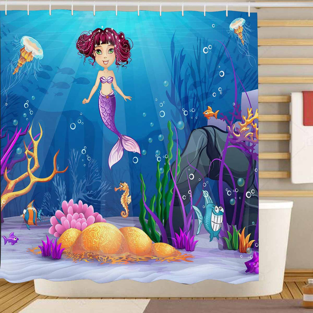 Seaworld themed print on shower curtains for bathroom, create a brilliant atmosphere in your bathroom, include a selection of different stylish and custom-made designs for your bath decoration.