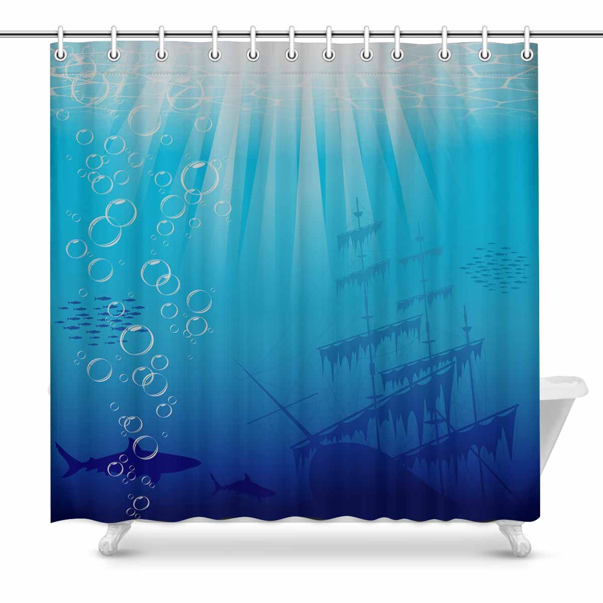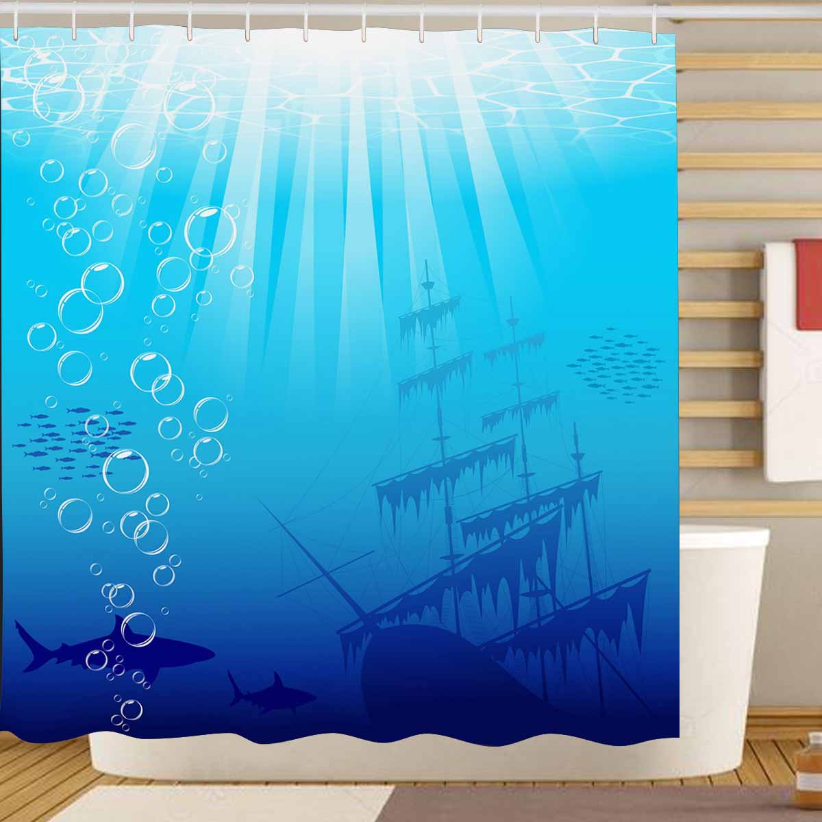 Seaworld themed print on shower curtains for bathroom, create a brilliant atmosphere in your bathroom, include a selection of different stylish and custom-made designs for your bath decoration.