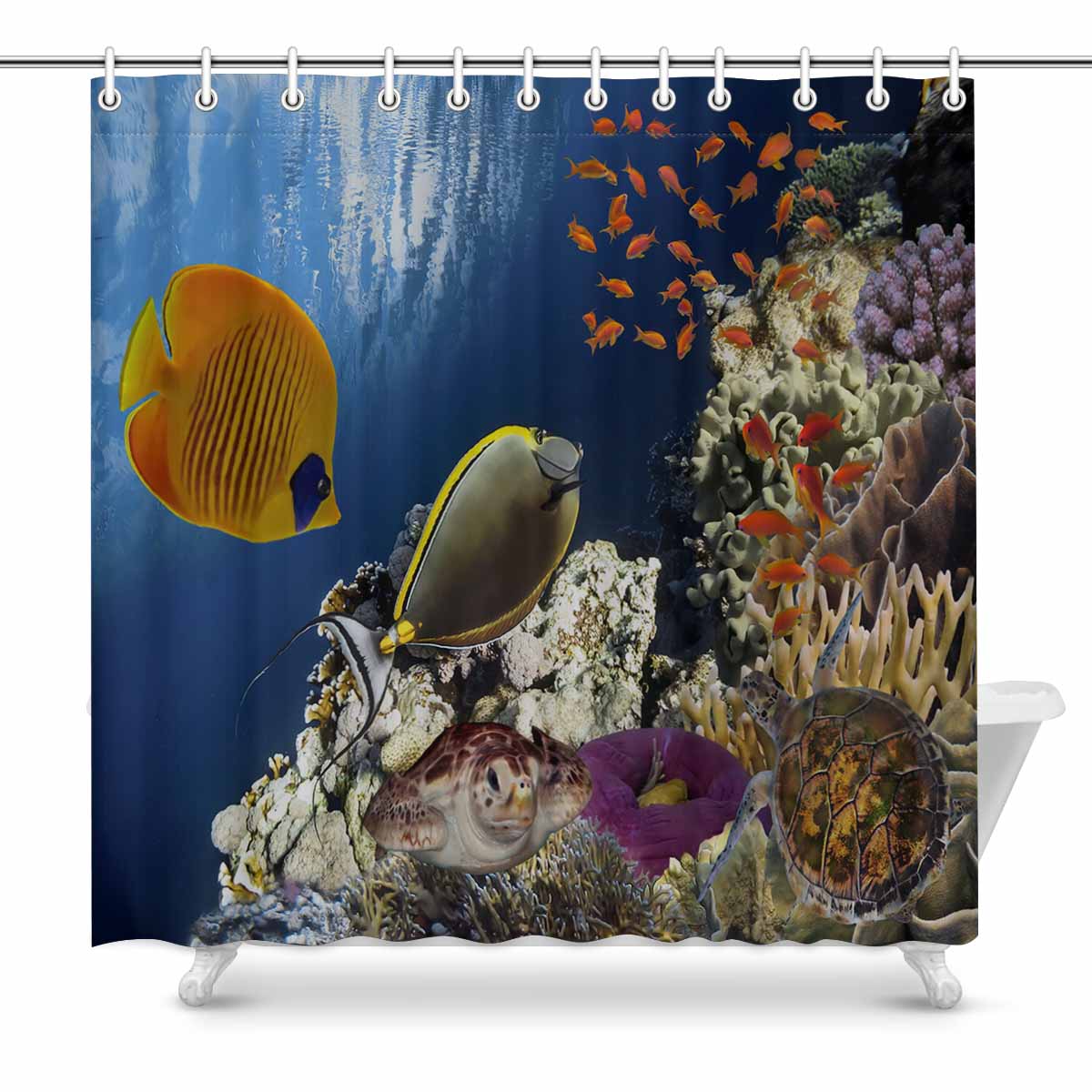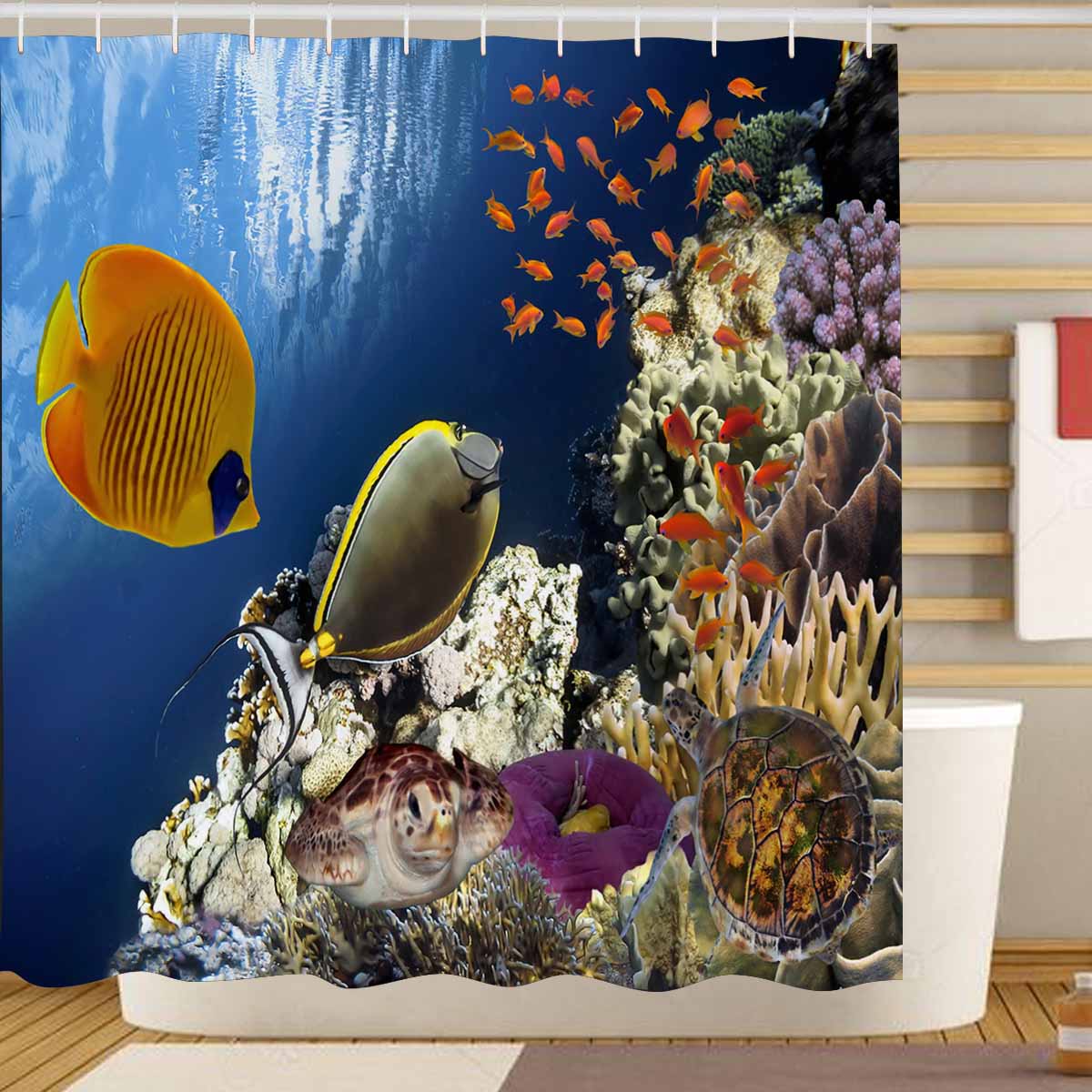 Seaworld themed print on shower curtains for bathroom, create a brilliant atmosphere in your bathroom, include a selection of different stylish and custom-made designs for your bath decoration.