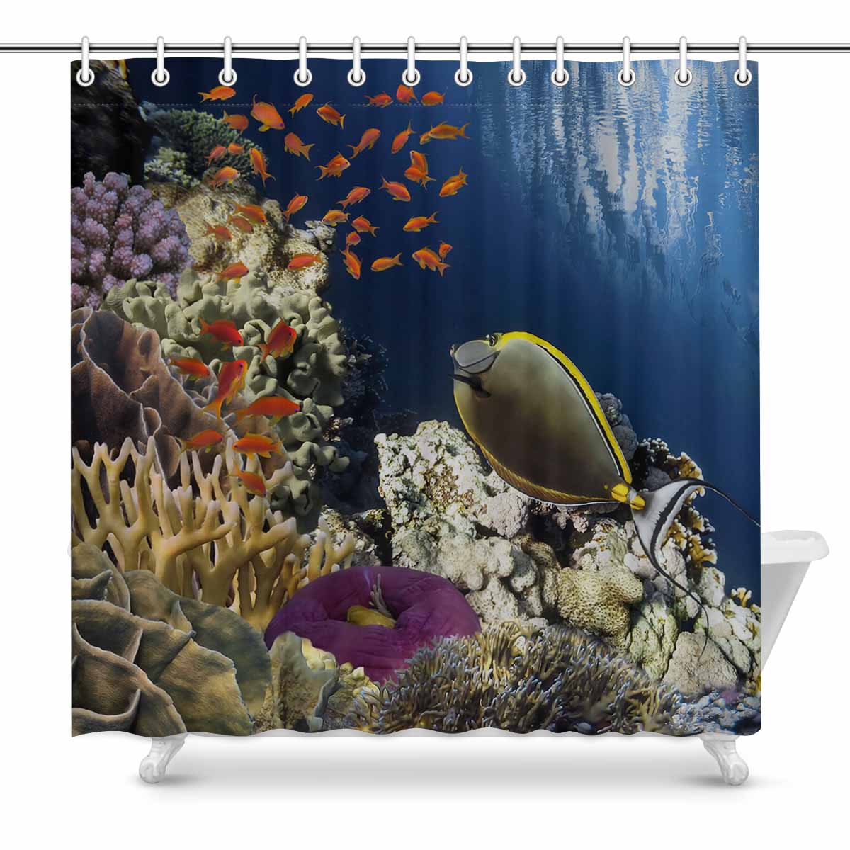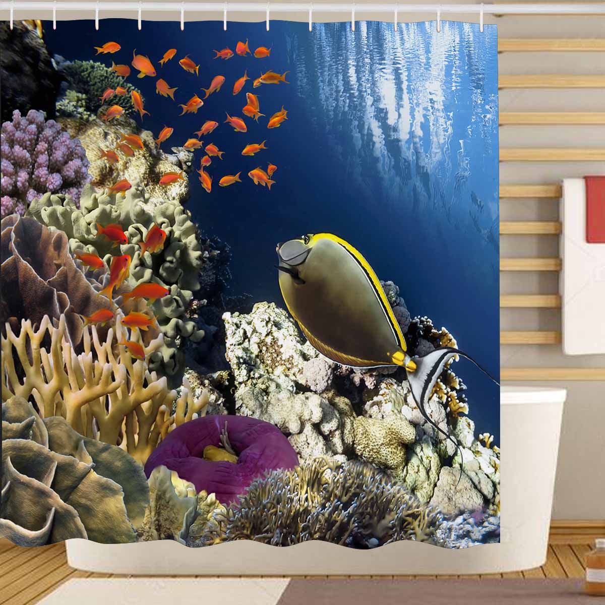 Seaworld themed print on shower curtains for bathroom, create a brilliant atmosphere in your bathroom, include a selection of different stylish and custom-made designs for your bath decoration.
