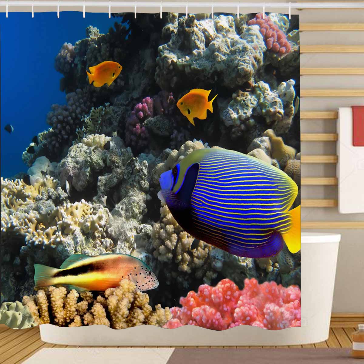 Seaworld Shower Curtains print with beautiful coral reef and fish