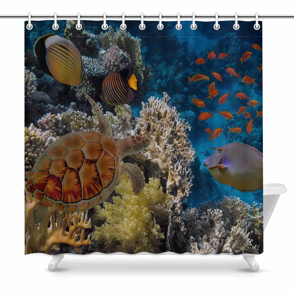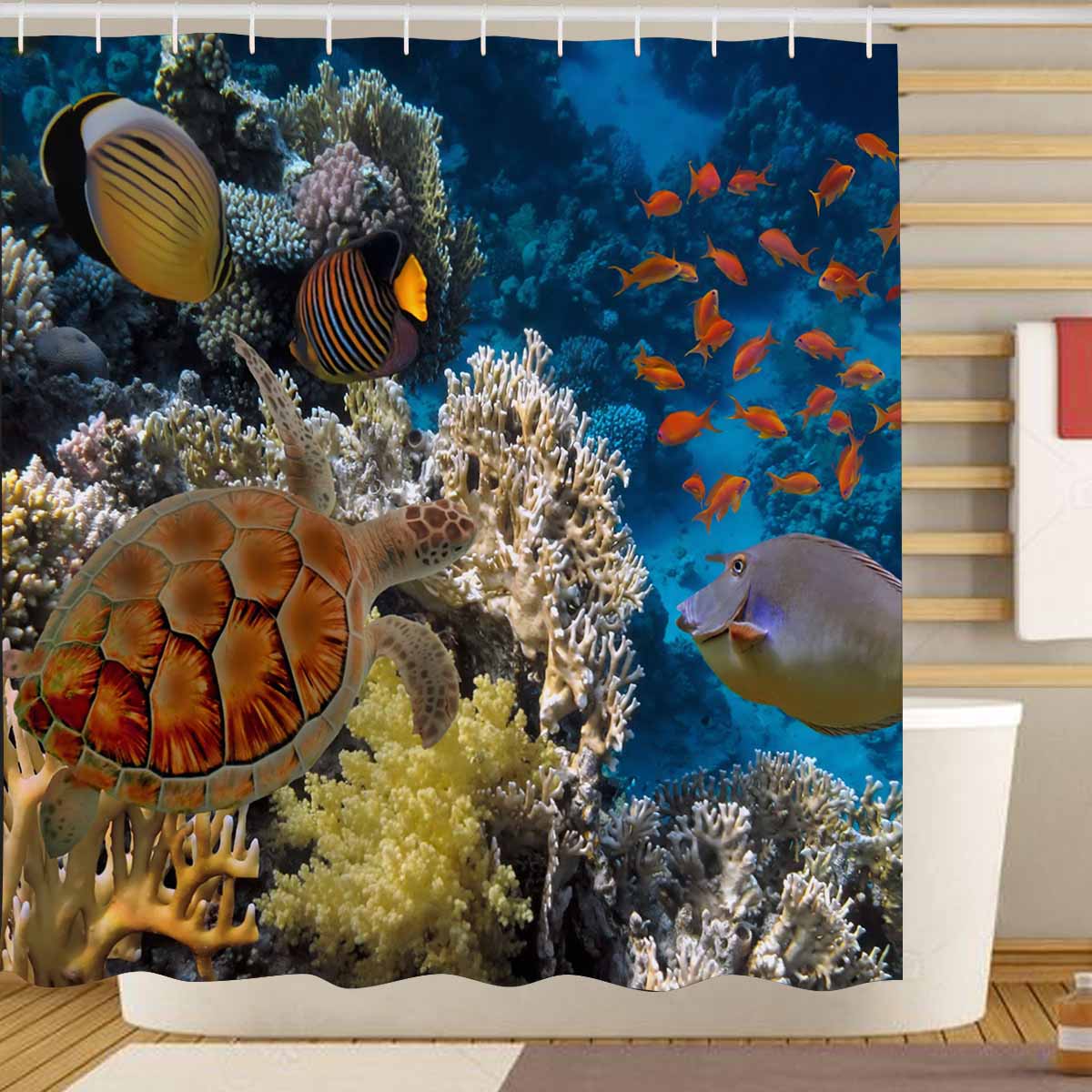 Seaworld themed print on shower curtains for bathroom, create a brilliant atmosphere in your bathroom, include a selection of different stylish and custom-made designs for your bath decoration.