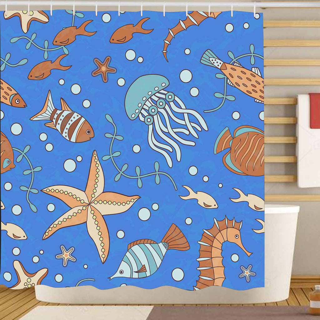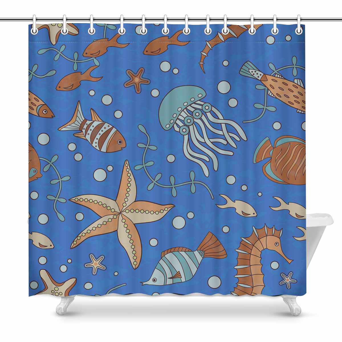 Seaworld Shower Curtains print with beautiful Jellyfish starfish fishes