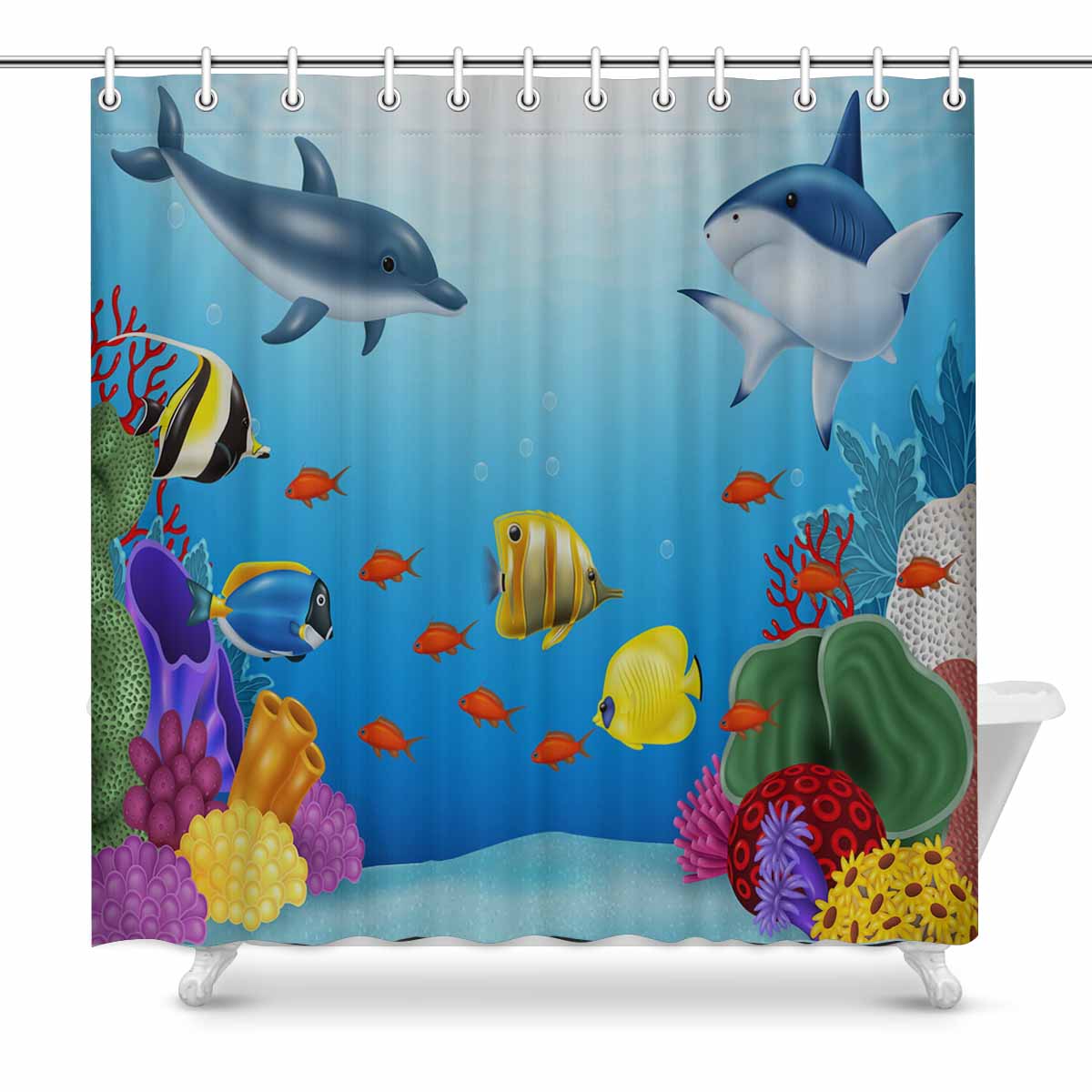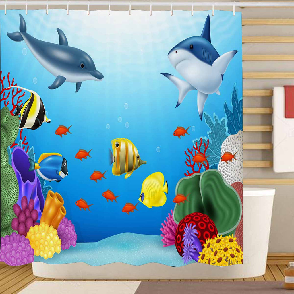 Seaworld themed print on shower curtains for bathroom, create a brilliant atmosphere in your bathroom, include a selection of different stylish and custom-made designs for your bath decoration.