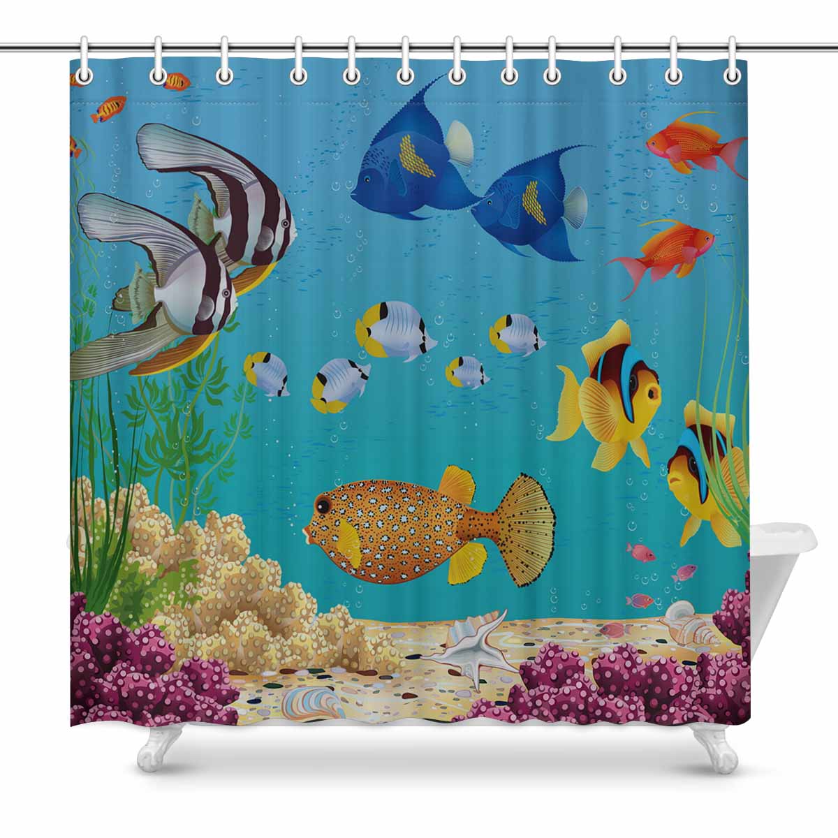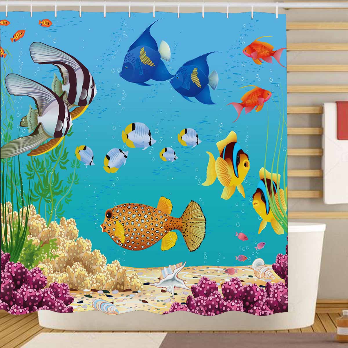 Seaworld themed print on shower curtains for bathroom, create a brilliant atmosphere in your bathroom, include a selection of different stylish and custom-made designs for your bath decoration.