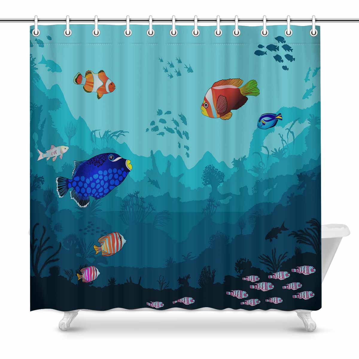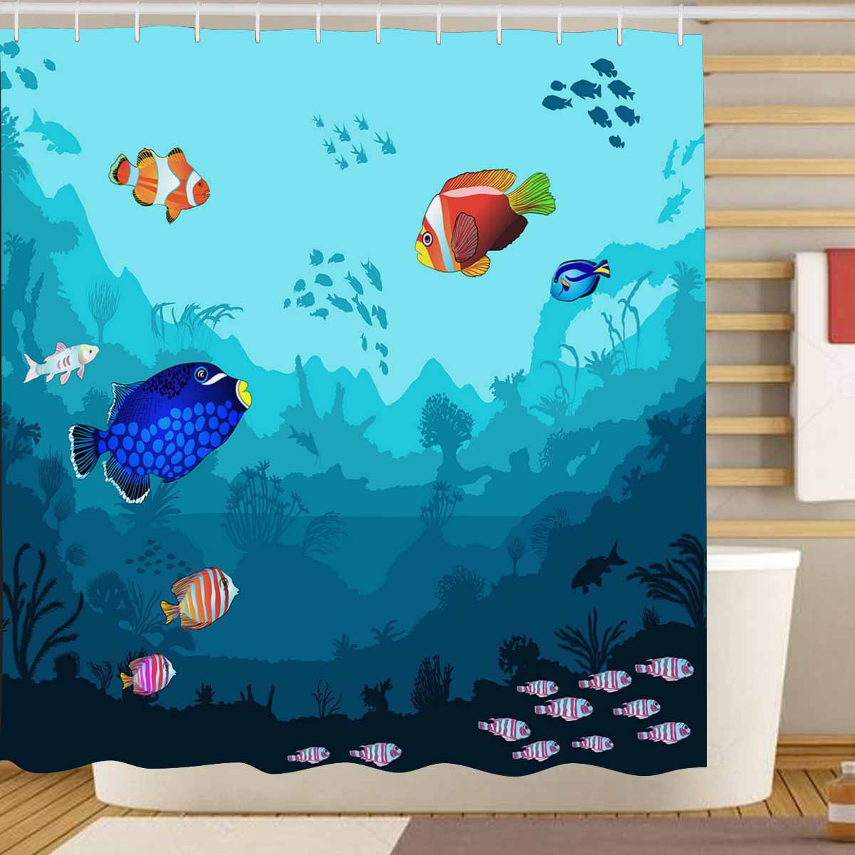 Seaworld themed print on shower curtains for bathroom, create a brilliant atmosphere in your bathroom, include a selection of different stylish and custom-made designs for your bath decoration.