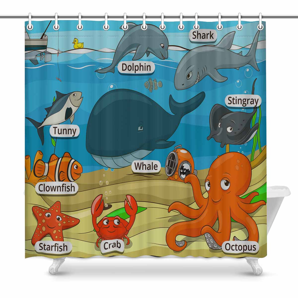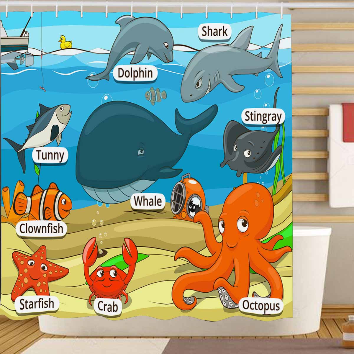 Seaworld themed print on shower curtains for bathroom, create a brilliant atmosphere in your bathroom, include a selection of different stylish and custom-made designs for your bath decoration.
