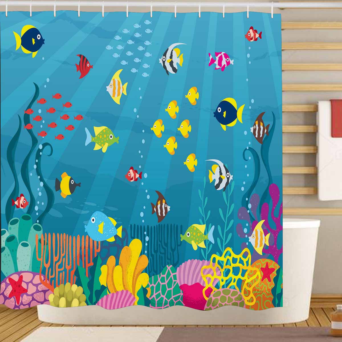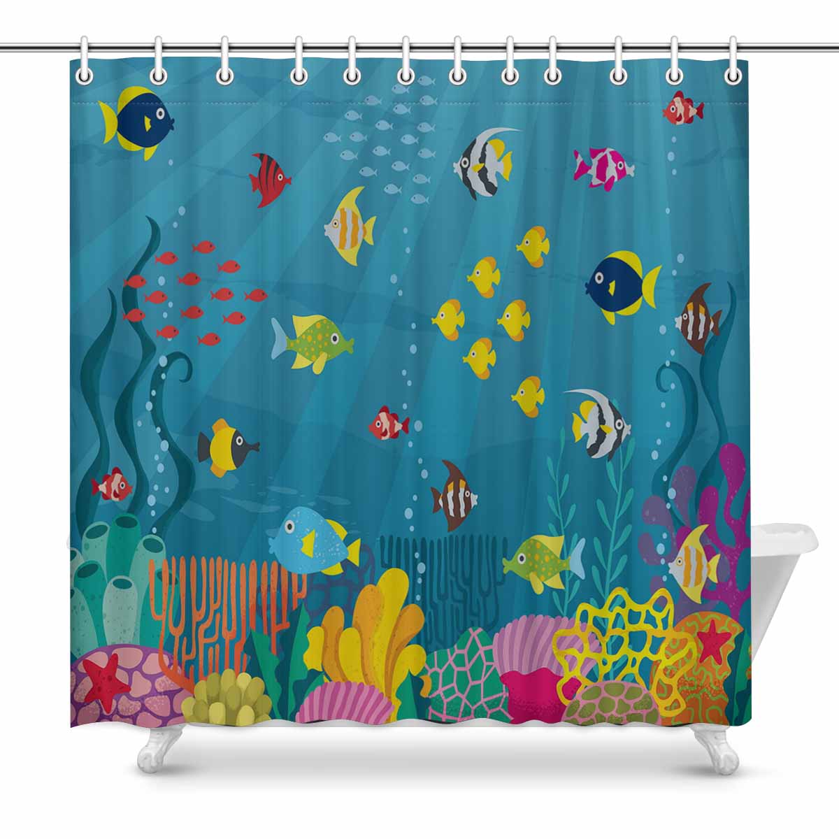 Seaworld Shower Curtains print with Cartoon corals and fish