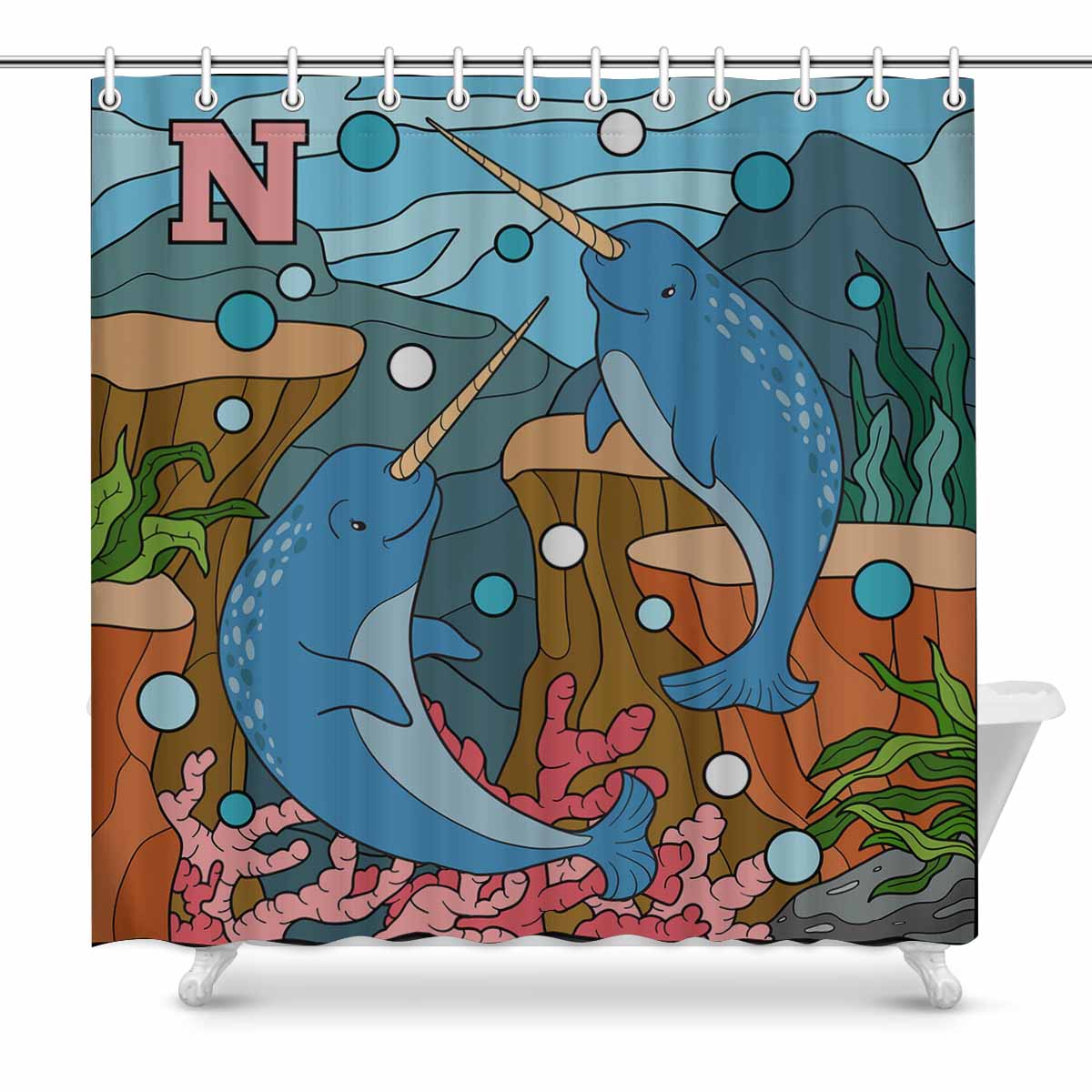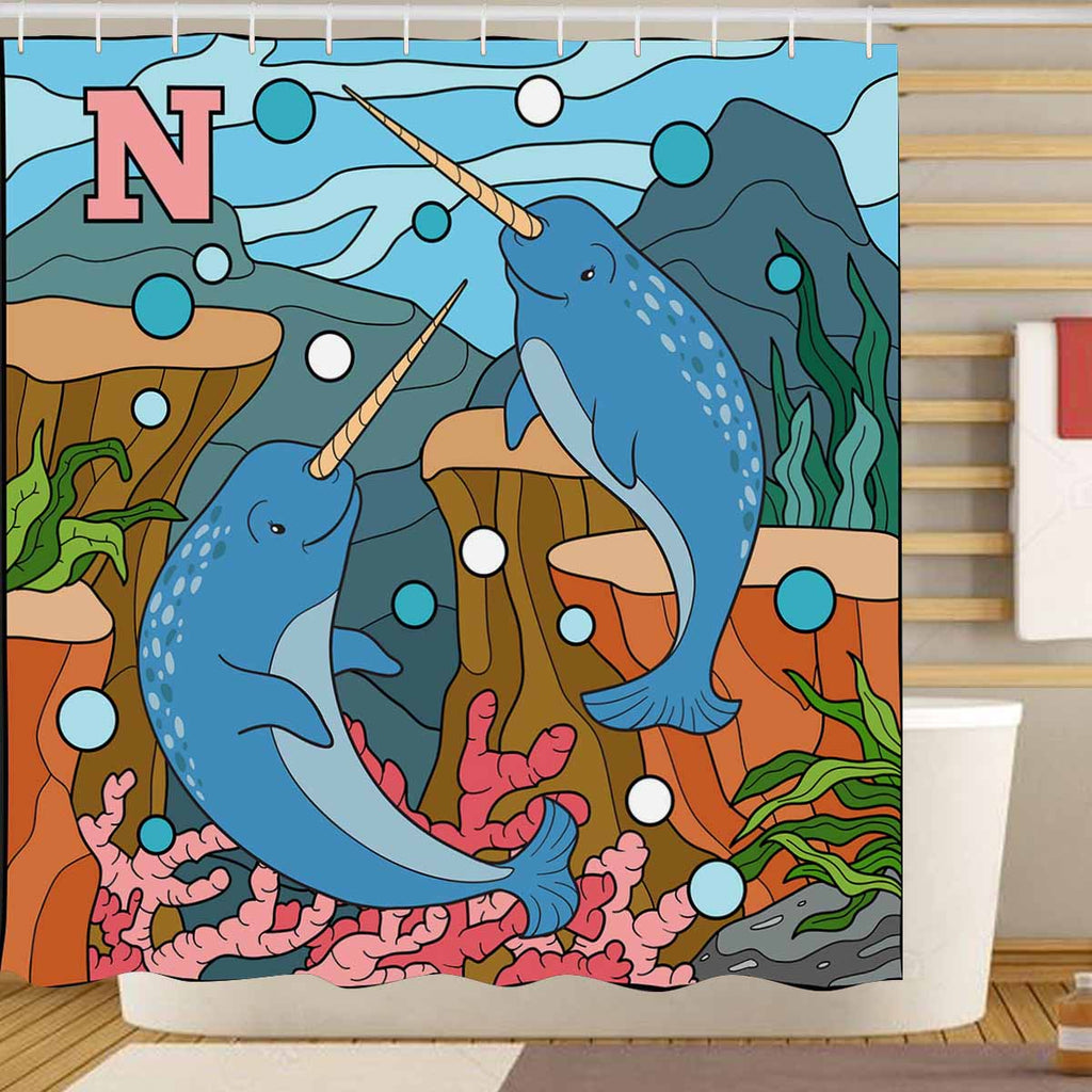 Seaworld Shower Curtains print with cartoon fish unicorn