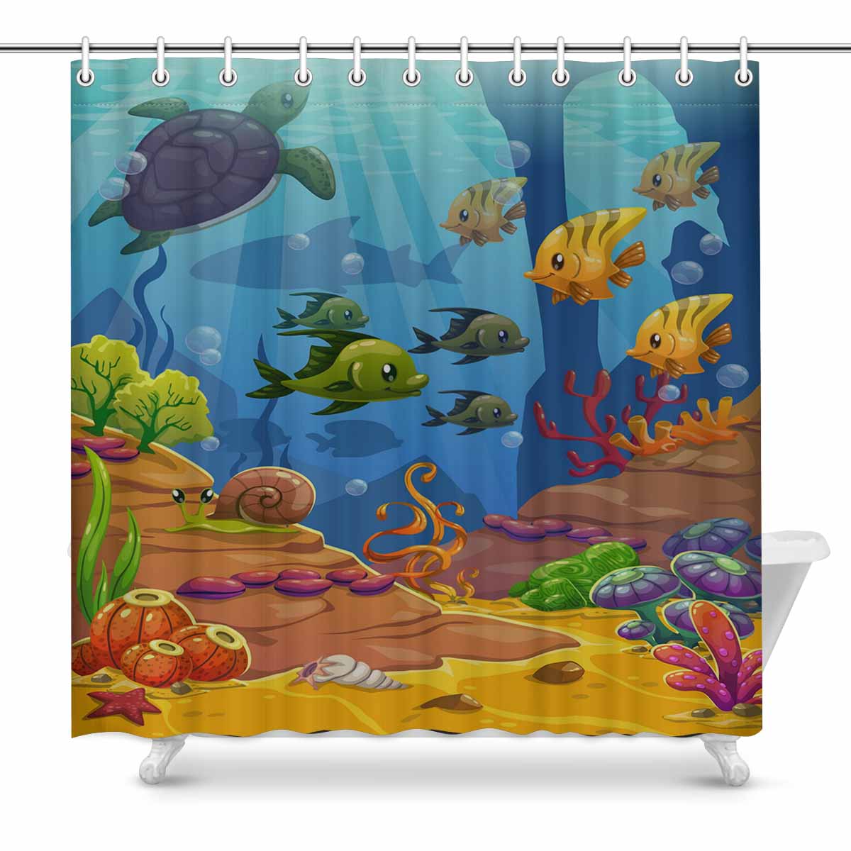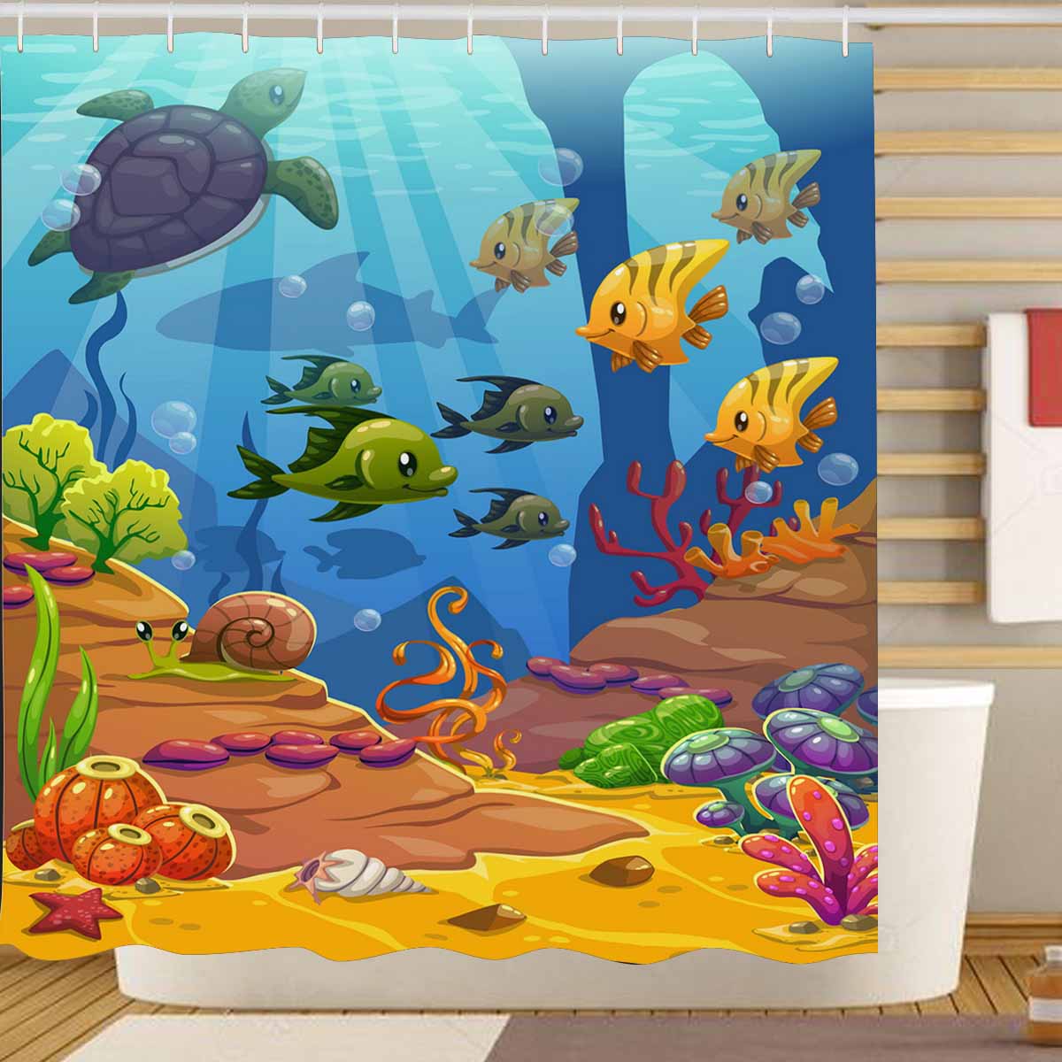 Seaworld Shower Curtains print with cartoon fishes turtle