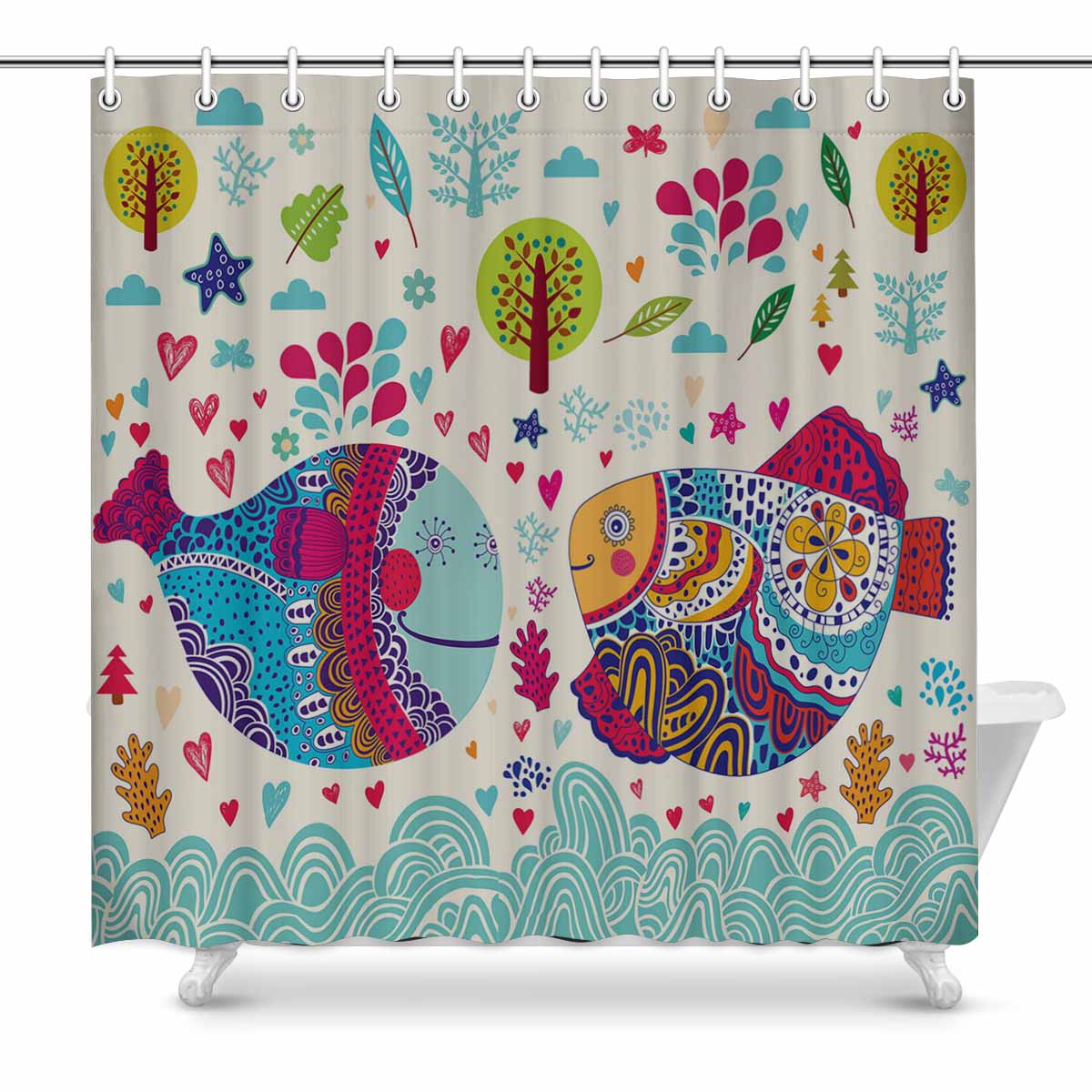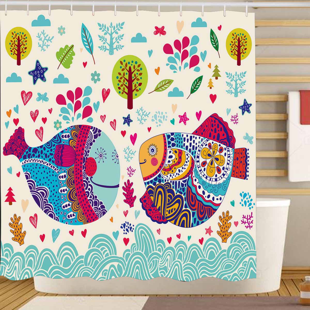 Seaworld themed print on shower curtains for bathroom, create a brilliant atmosphere in your bathroom, include a selection of different stylish and custom-made designs for your bath decoration.