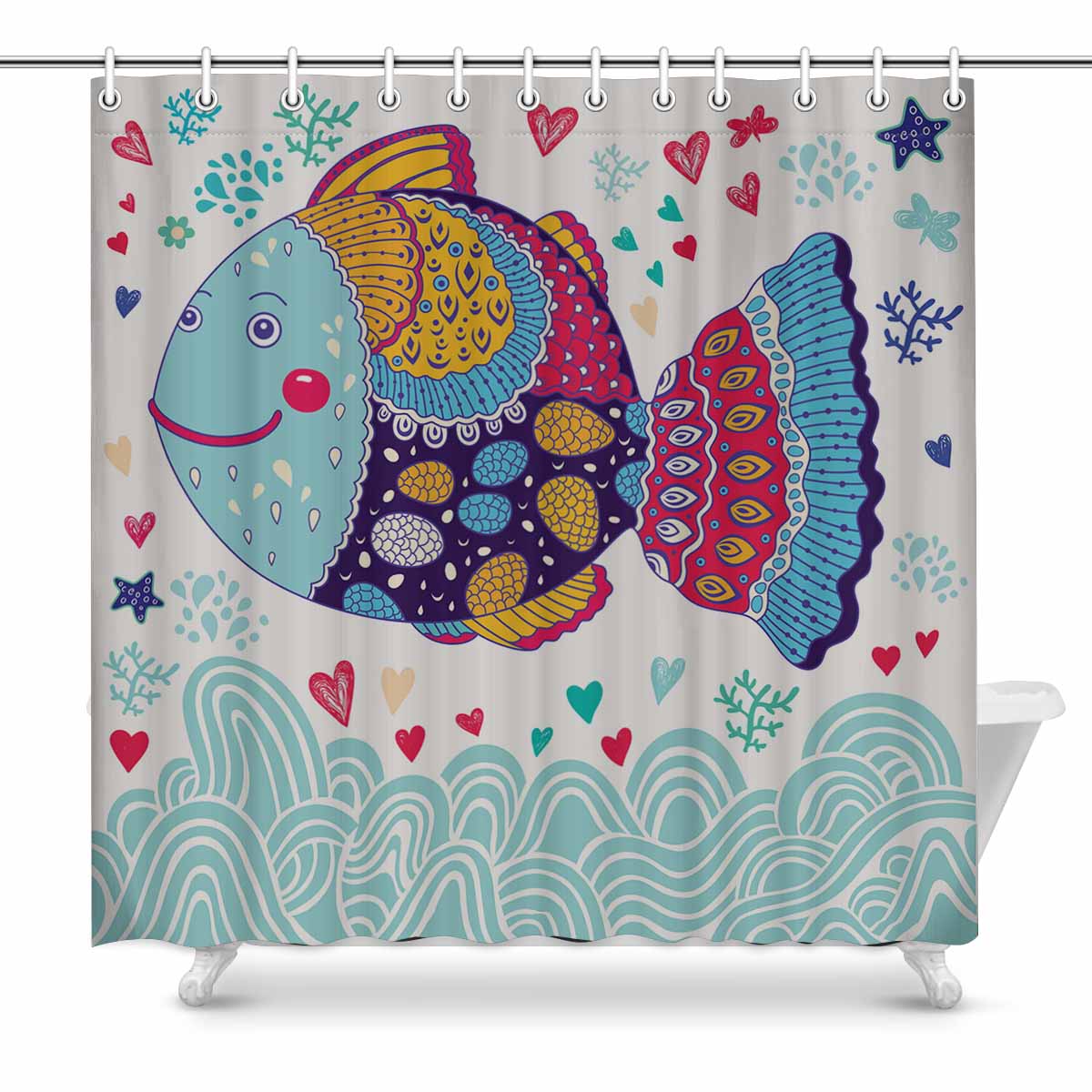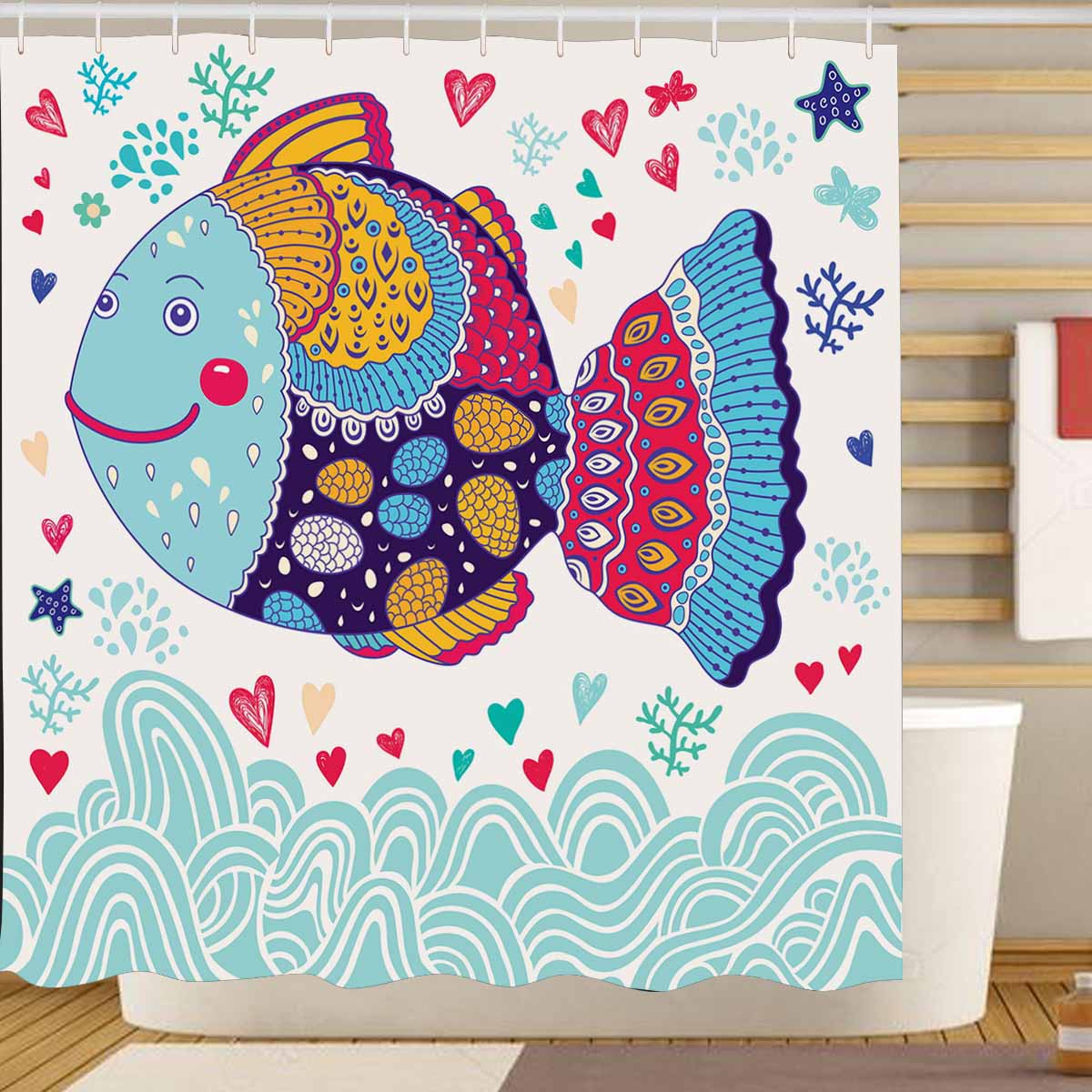 Seaworld themed print on shower curtains for bathroom, create a brilliant atmosphere in your bathroom, include a selection of different stylish and custom-made designs for your bath decoration.