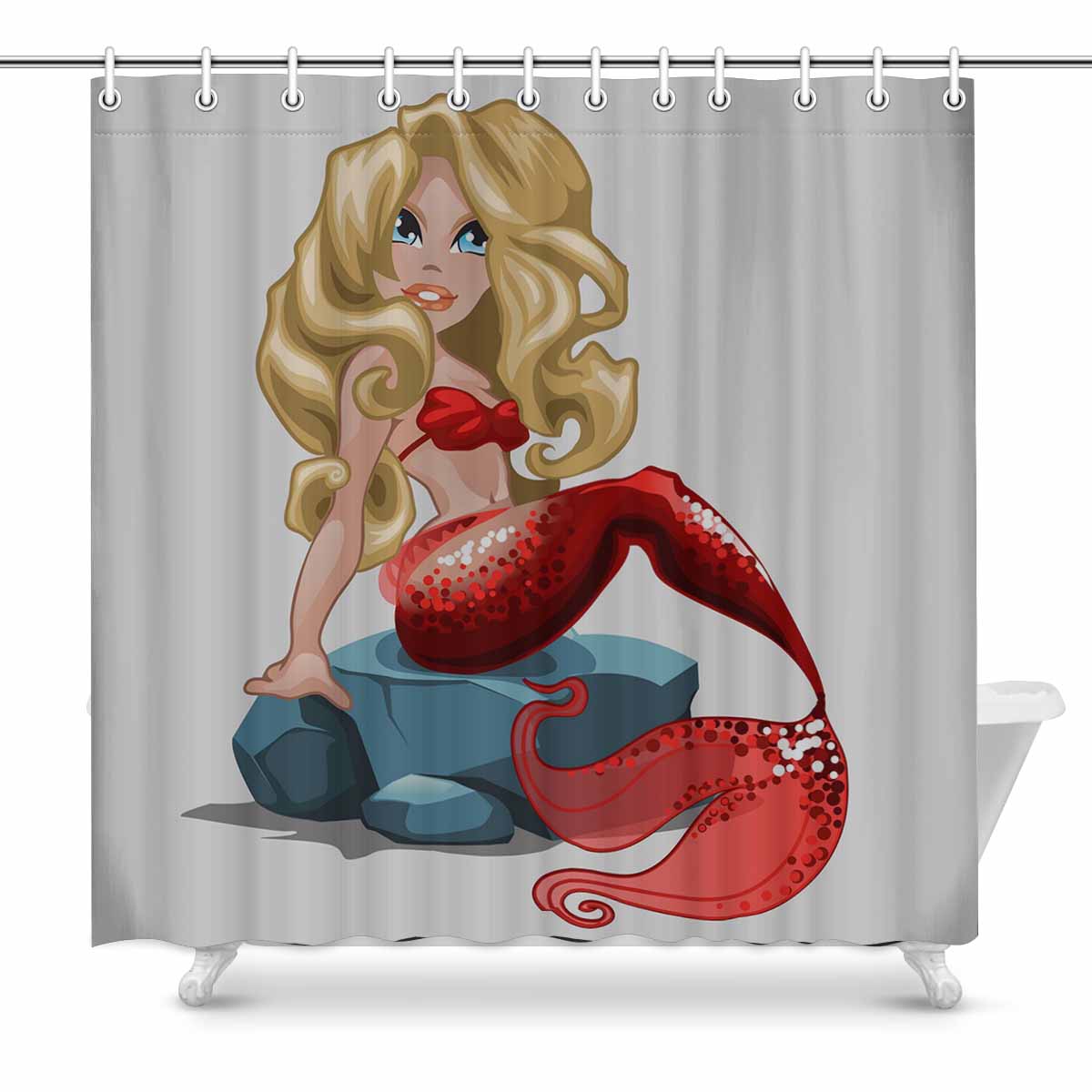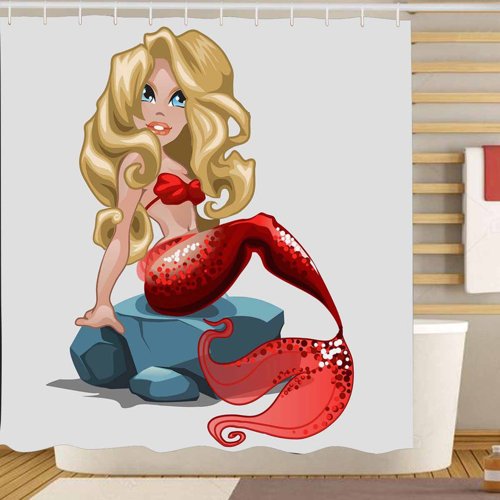 Seaworld Shower Curtains print with cartoon Mermaid themed