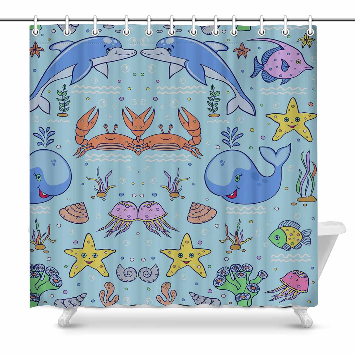 Seaworld themed print on shower curtains for bathroom, create a brilliant atmosphere in your bathroom, include a selection of different stylish and custom-made designs for your bath decoration.