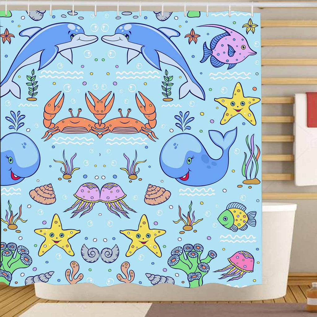 Seaworld Shower Curtains print with cartoon ocean fishes