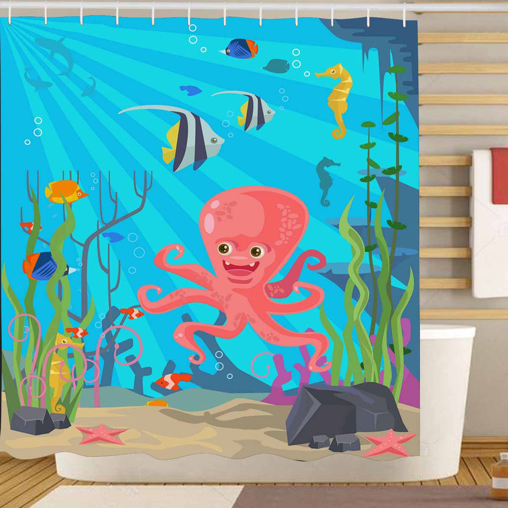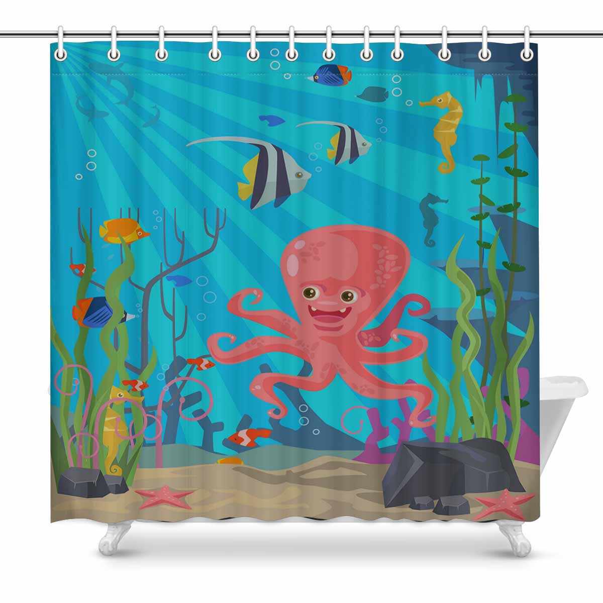 Seaworld themed print on shower curtains for bathroom, create a brilliant atmosphere in your bathroom, include a selection of different stylish and custom-made designs for your bath decoration.