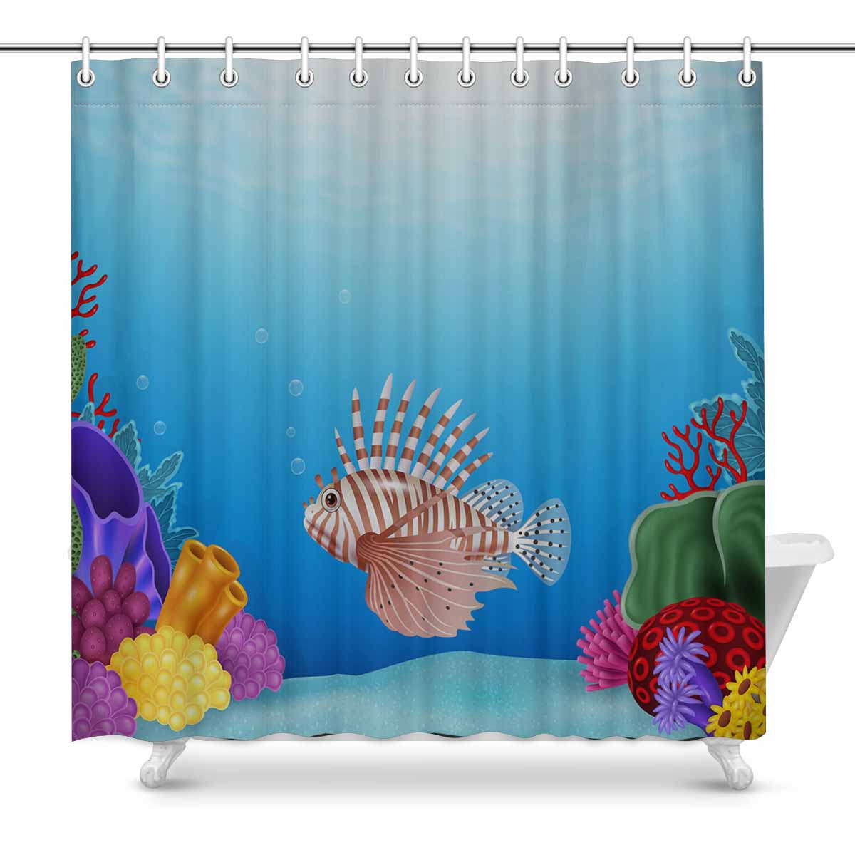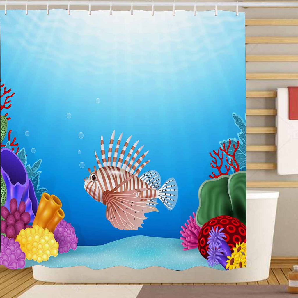 Seaworld Shower Curtains print with Cartoon Scorpion fish