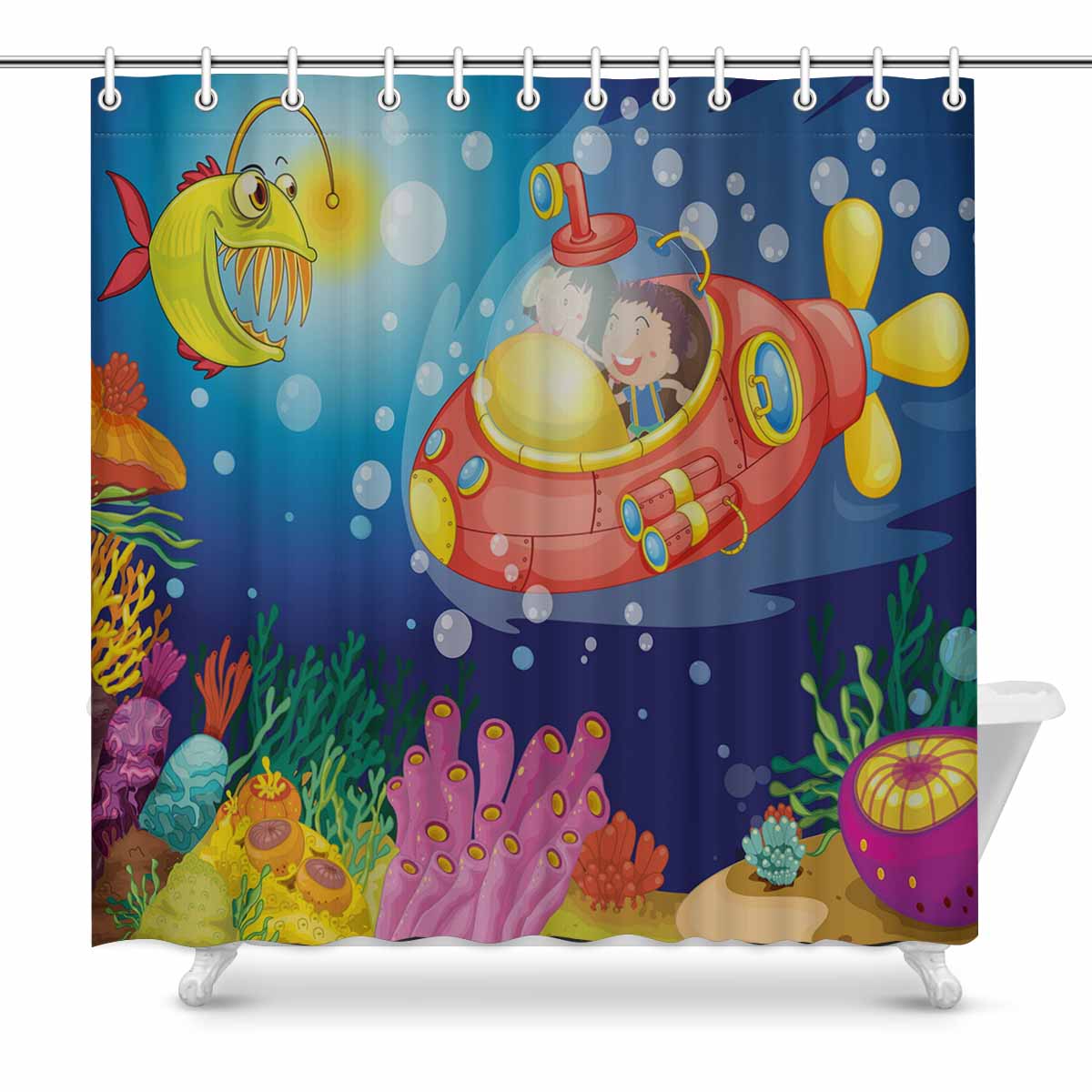 Seaworld themed print on shower curtains for bathroom, create a brilliant atmosphere in your bathroom, include a selection of different stylish and custom-made designs for your bath decoration.