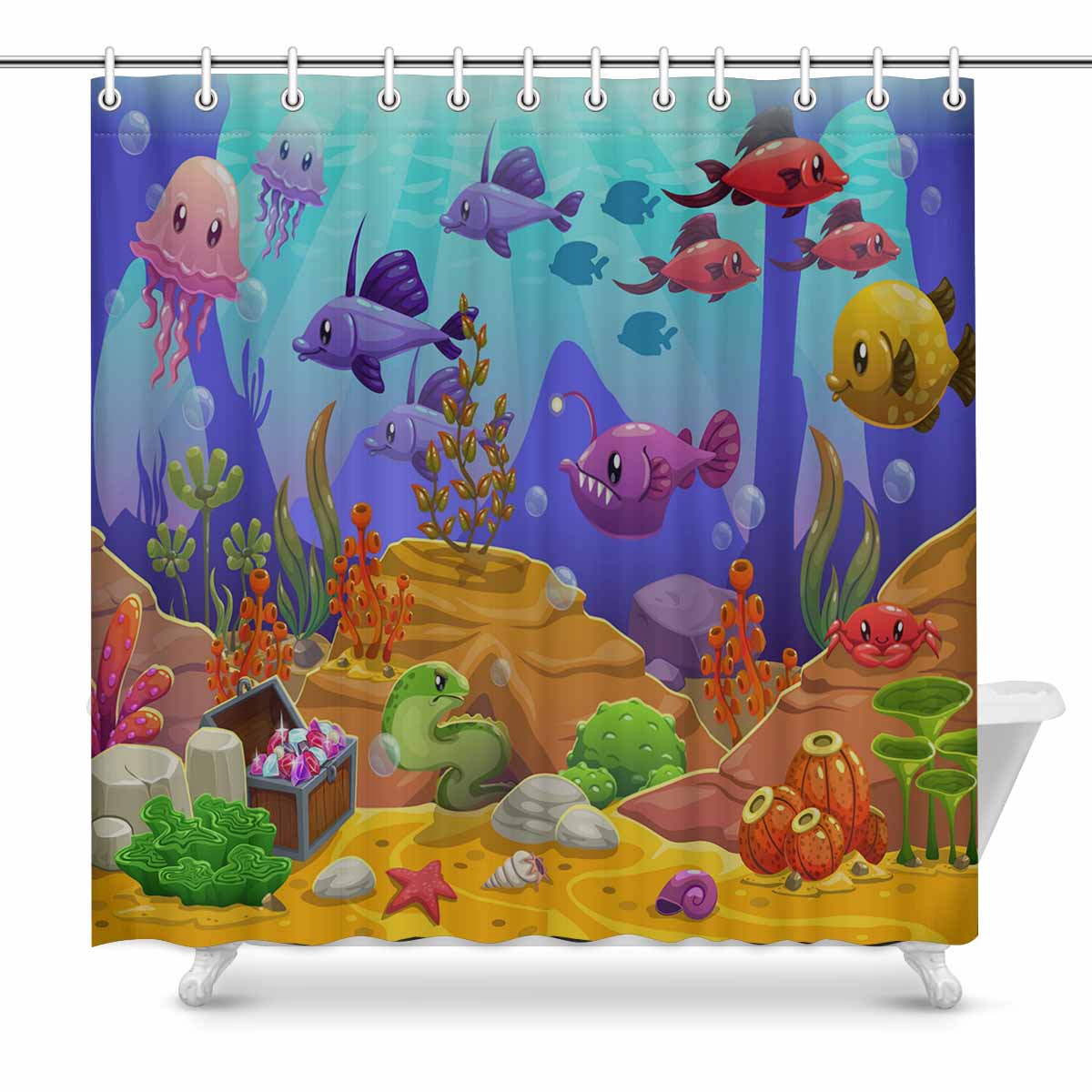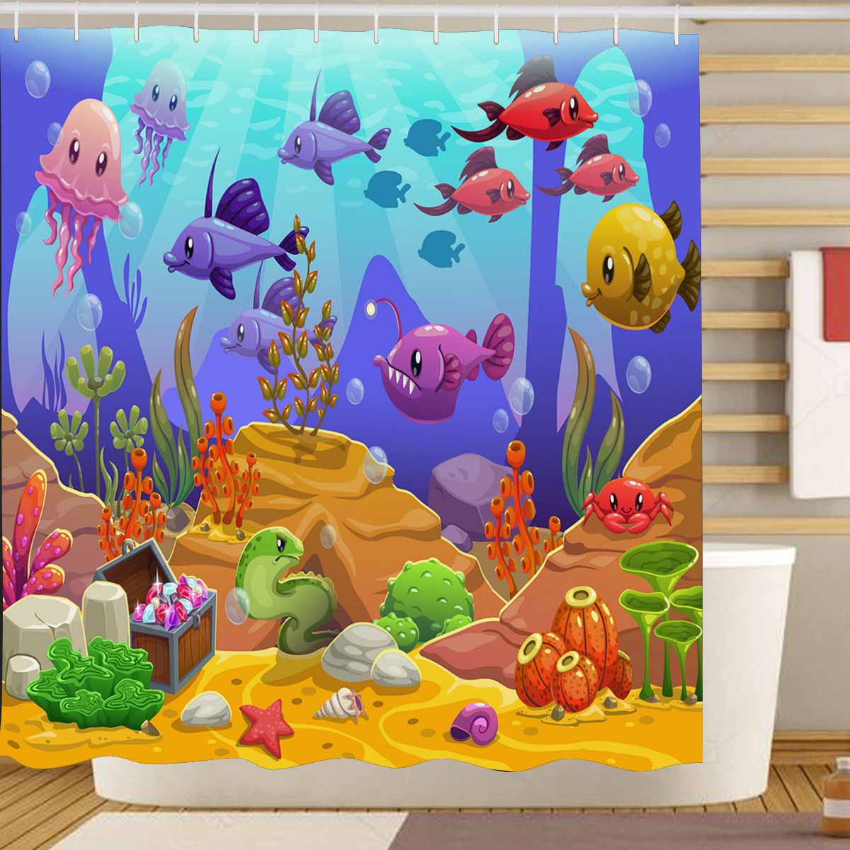 Seaworld themed print on shower curtains for bathroom, create a brilliant atmosphere in your bathroom, include a selection of different stylish and custom-made designs for your bath decoration.